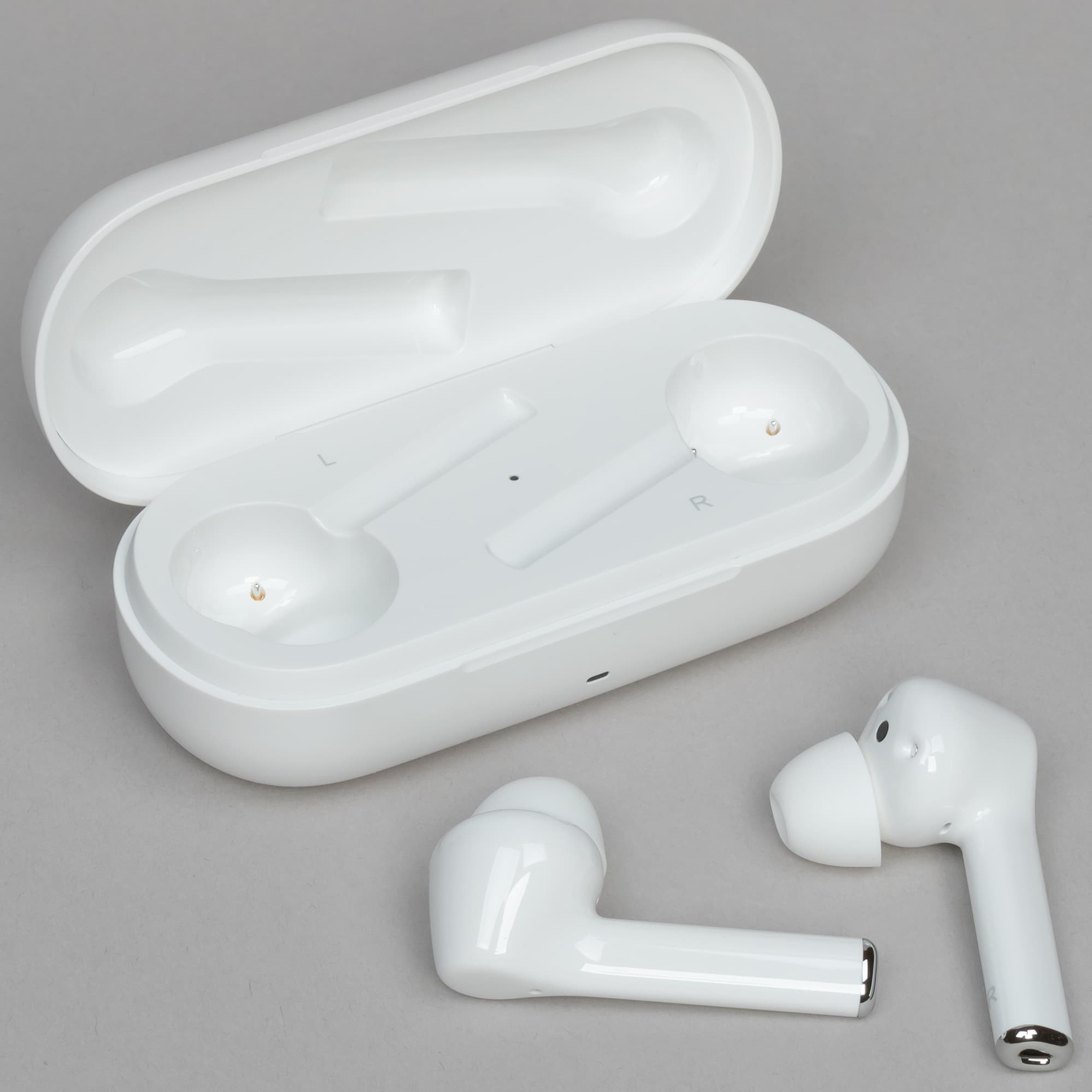 Комплект поставки довольно заметно изменился. Наушники в кейсе и документация, естественно, по-прежнему на месте. Подобрать подходящую пару силиконовых насадок пользователю будет чуть проще — их теперь не три, а четыре (одна установлена на наушники по умолчанию). А вот зарядный кабель Huawei теперь в коробку не кладет — и мы, как ни странно, продолжаем это решение скорее приветствовать, чем критиковать. Лучше уж полное отсутствие кабеля, чем короткий «огрызок», вложенный по принципу «лишь бы был» и в лучшем случае отправляющийся на дальнюю полку, а в худшем — сразу в мусорное ведро.