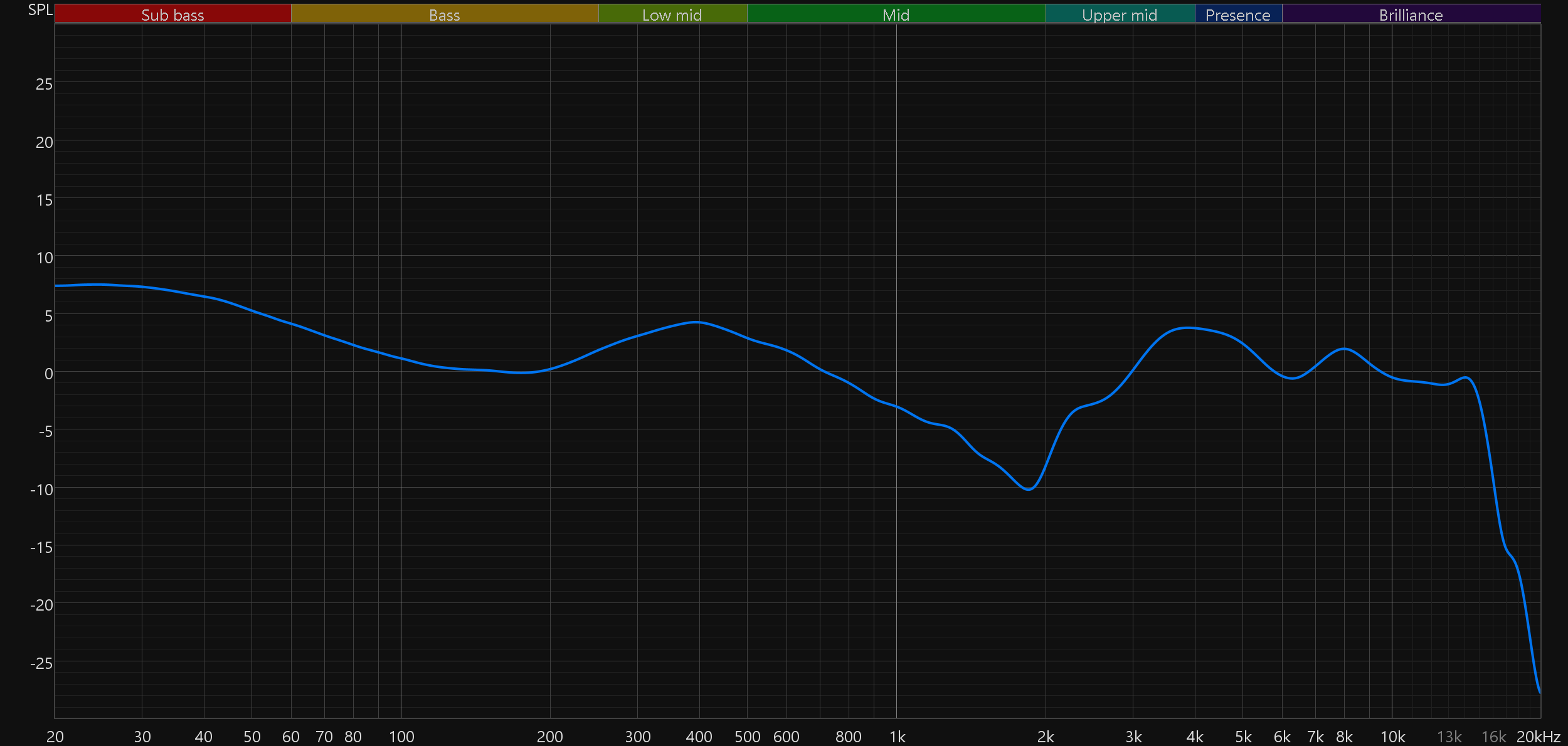 Акцент в области 350—400 Гц — одна из ключевых черт тюнинга наушников. С одной стороны он может добавить «телесности» звучанию вокала и инструментов, с другой — помешать восприятию средних частот, заметно снизив уровень детализации, особенно в плотных миксах. Более остро это ощущается на фоне отчетливого снижения уровня средних частот в диапазоне от 1 до 2 кГц, из-за чего вокал звучит менее естественно, а акустические инструменты теряют реализм. Зато такая настройка дополнительно подчеркивает края диапазона, и это точно оценят поклонники V-образного звучания.