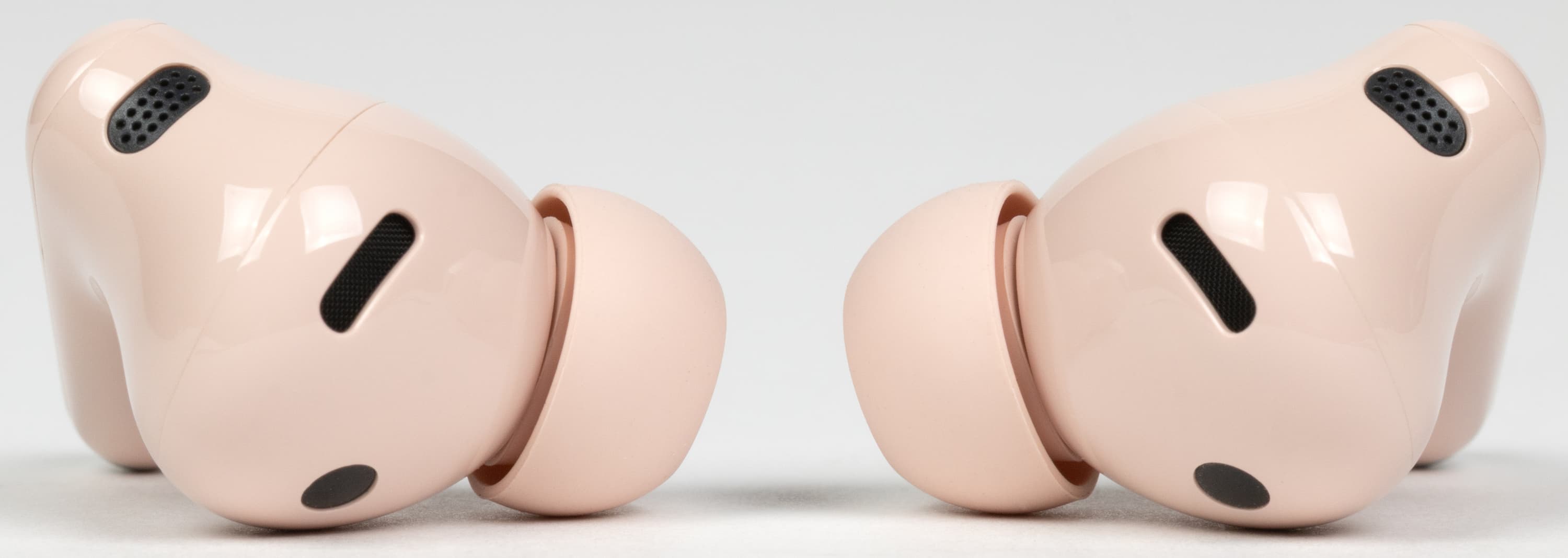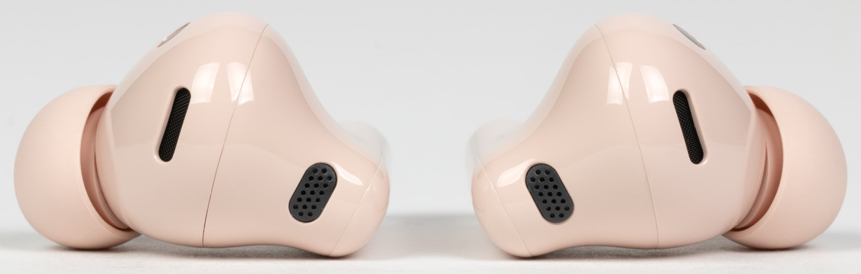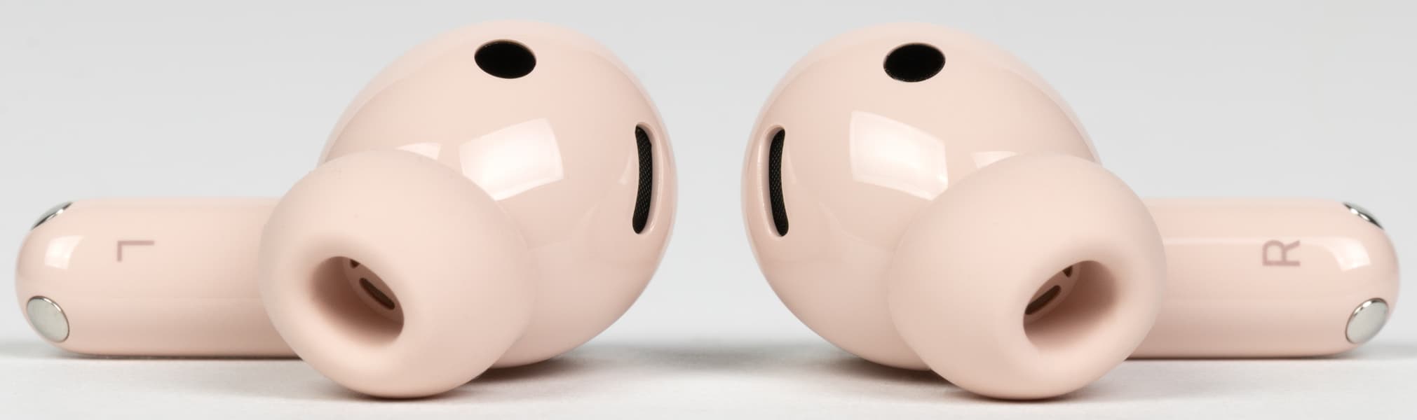 На верхнем торце «ножек» расположены внешние микрофоны системы активного шумоподавления, скрытые под черной перфорированной накладкой.