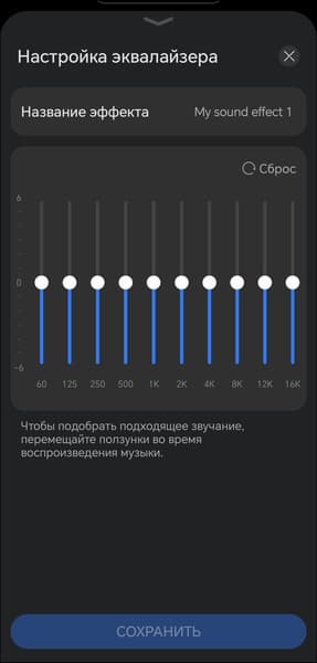 Количество доступных звуковых профилей не изменилось — их по-прежнему шесть. Правда, вместо симпатичных иконок теперь используется лаконичный текстовый список. В прошлой версии появилась возможность создавать свои пресеты с помощью 10-полосного эквалайзера, которая раньше была лишь в серии Pro — эта опция по-прежнему доступна, чему можно только порадоваться.