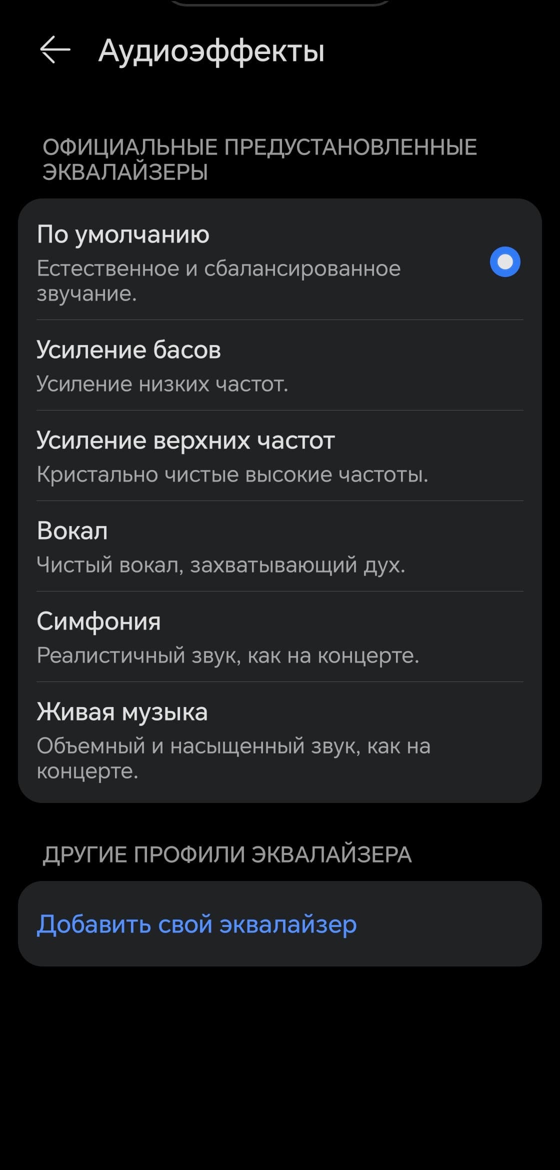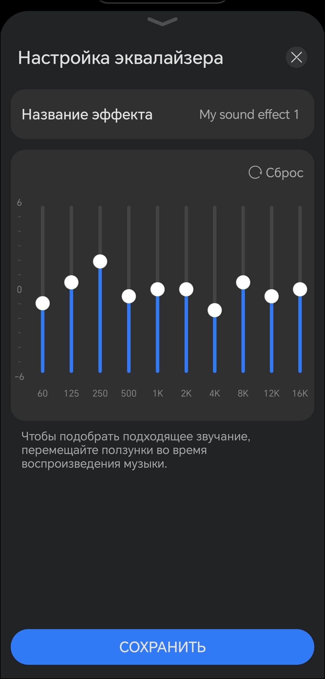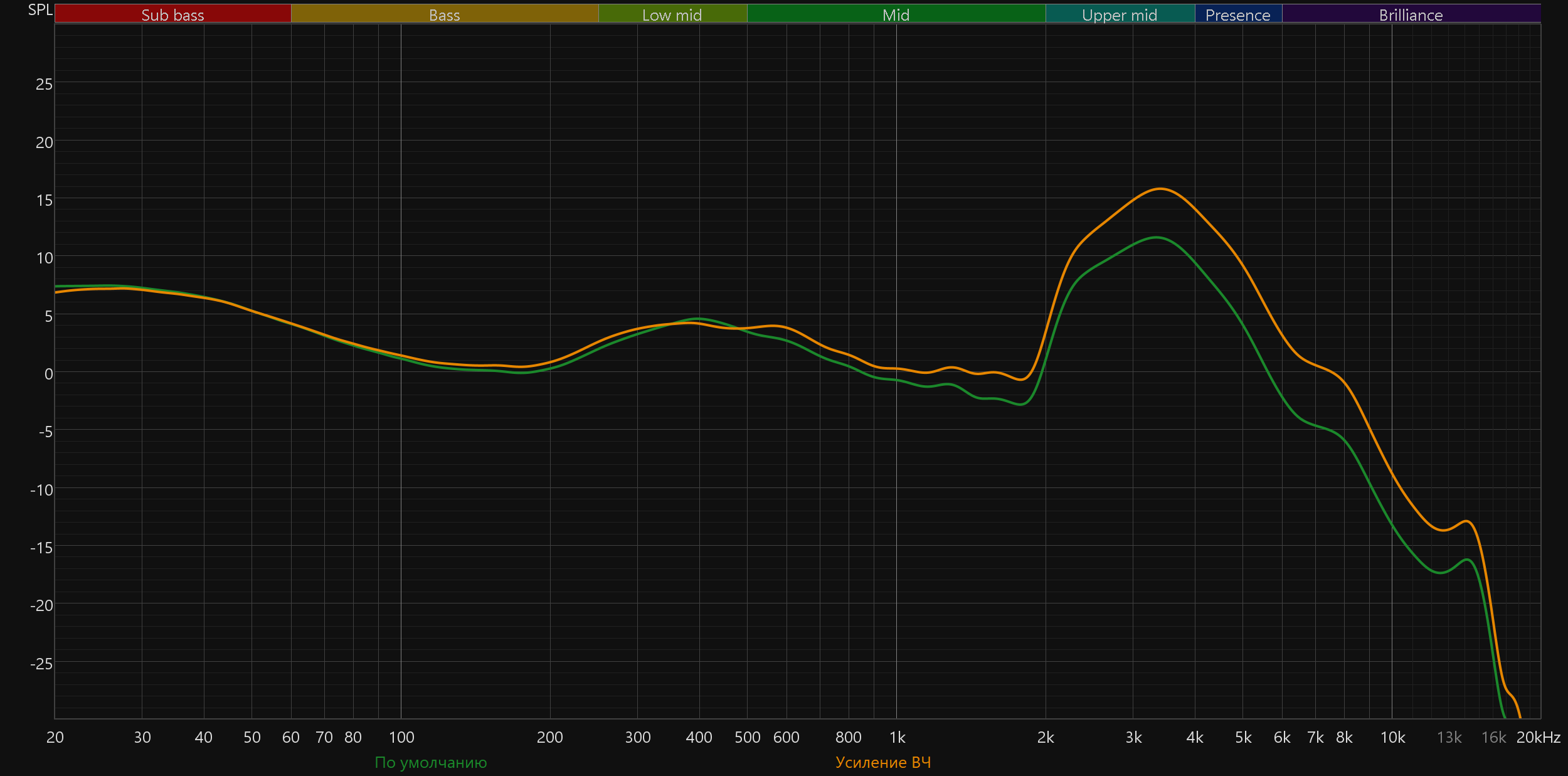 Характер звучания снова изменился — и снова не в сторону нейтральности и баланса. Наушники настроены ярко, с выраженными акцентами и фокусом на эффектной подаче. Такой звук может прийтись по вкусу любителям поп-музыки, хип-хопа и электронной сцены, но для продолжительного прослушивания и более сложных жанров настройка по умолчанию вряд ли подойдет. К счастью, в приложении есть полноценный эквалайзер и несколько удачных пресетов, которые позволяют быстро добиться более ровного и сбалансированного звучания.