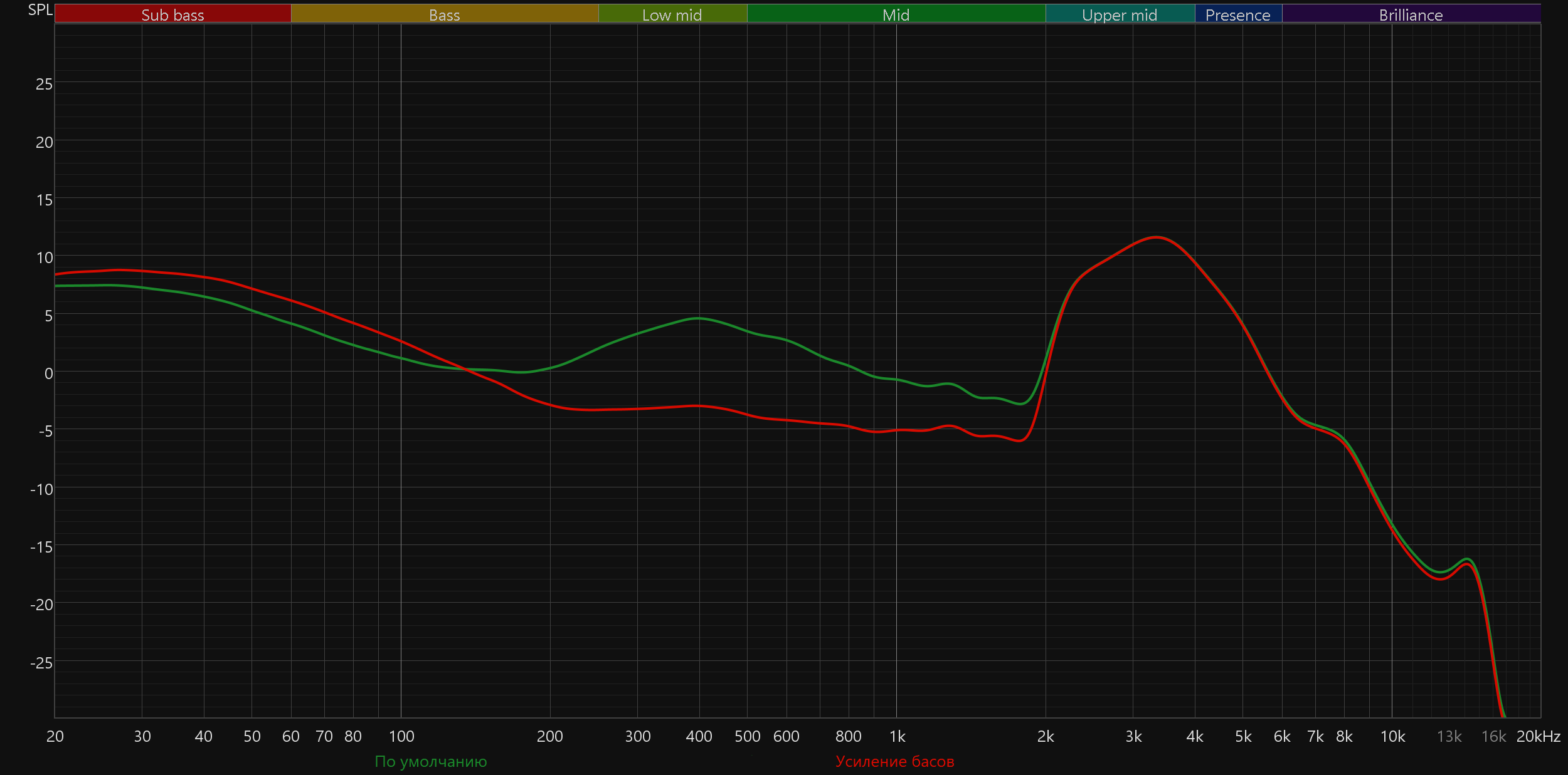 Саббас ощутимо подчеркнут — такой подход сегодня используют многие производители. Решение логичное: акцент проявляется прежде всего там, где он уместен — в электронной музыке, хип-хопе и смежных жанрах, добавляя звуку плотности и выразительности. При этом основной низкочастотный диапазон подается сдержанно и без лишней агрессии. Любителям мощного баса такого уровня может показаться недостаточно, но в целом баланс удачный: звучание остается комфортным, глубоким и без заметного гудения.