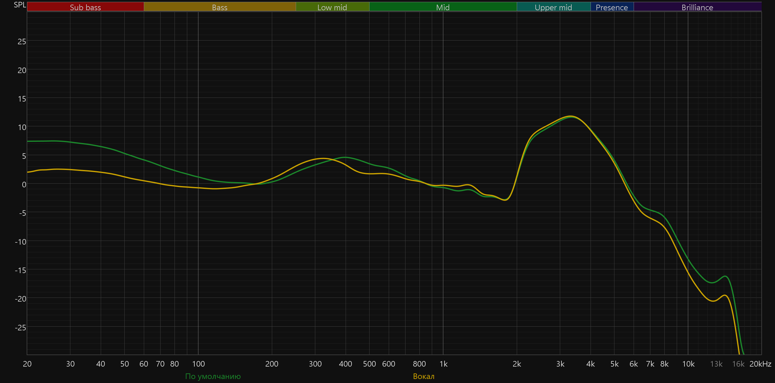 Для большей наглядности наложим график с активированным пресетом «Живая музыка» на используемую целевую кривую.