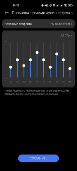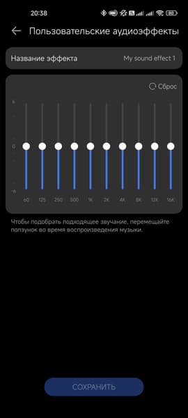 Также можно создать свой профиль с помощью 10-полосного эквалайзера, способного серьезно изменить звучание наушников. Ну и, наконец, в самом низу есть кнопка включения режима Smart HD, в котором задействуется кодек LDAC с адаптивным битрейтом. Убедиться в этом можно, вернувшись в системное меню.