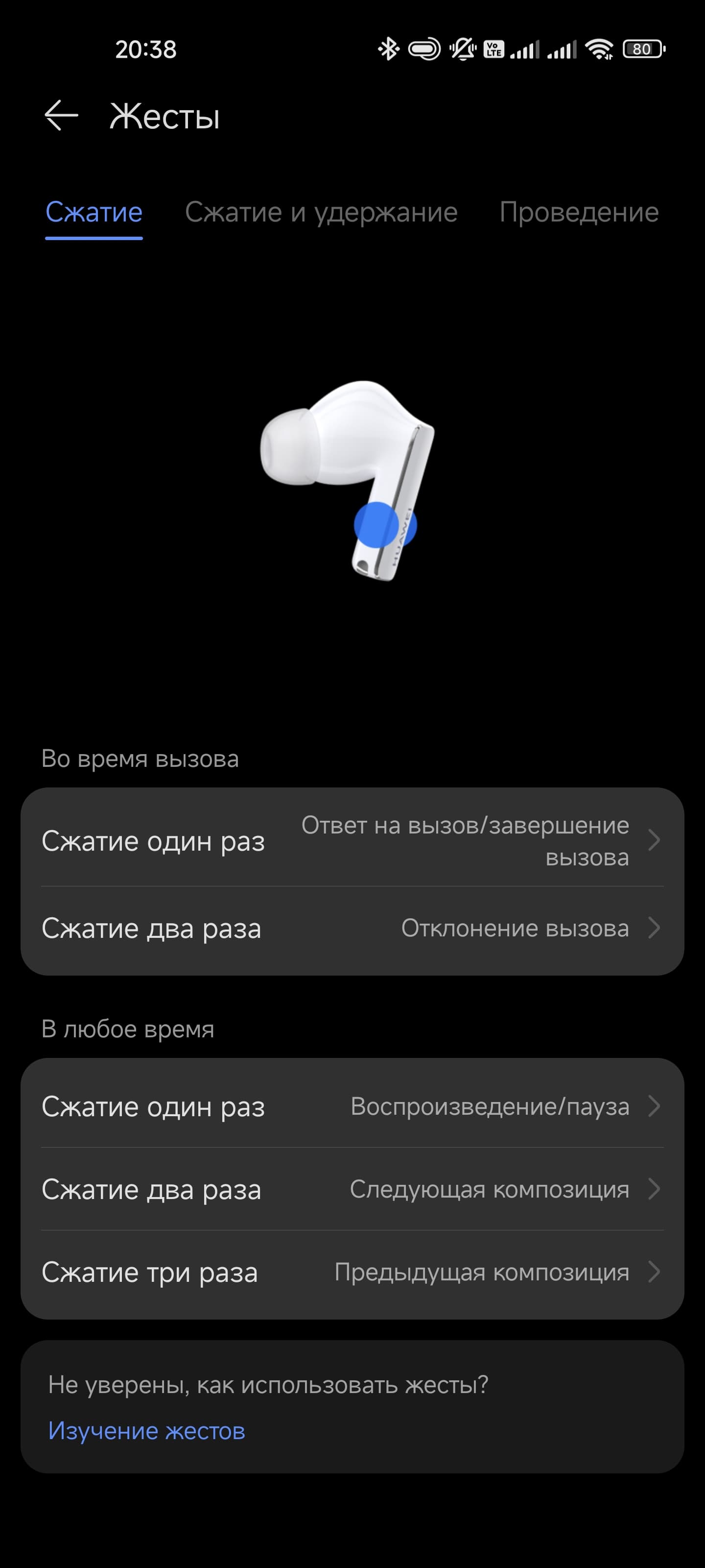 Но спустя буквально пару дней активного использования Huawei FreeBuds Pro 2 появляется навык делать это автоматически и без лишних проблем. Внешняя сторона ножек не является сенсорной — на нее можно положить указательный палец, чтобы зафиксировать наушник. Ну а большим и безымянным сжимать ножку.