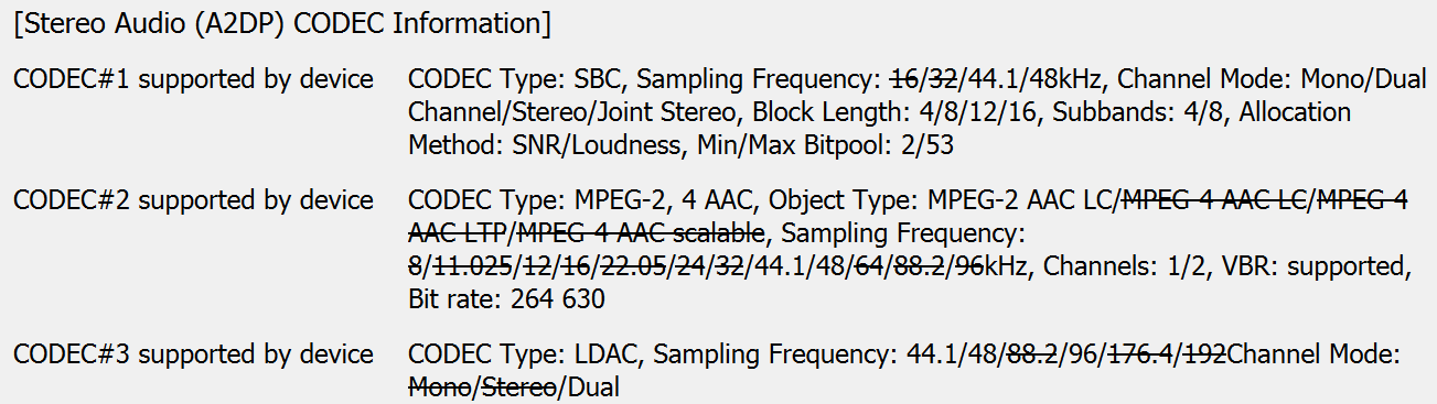 Любой из наушников может использоваться в монорежиме — достаточно просто убрать другой в кейс. Поддержку кодеков мы традиционно проверили с помощью утилиты Bluetooth Tweaker. Все как заявлено: SBC, AAC и LDAC.