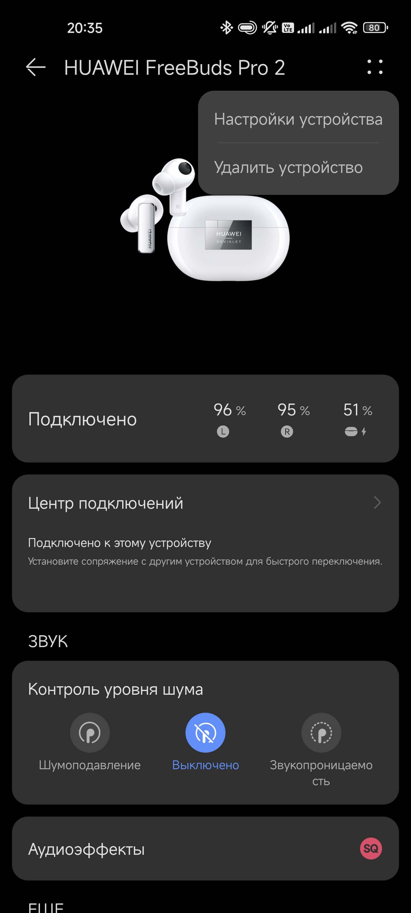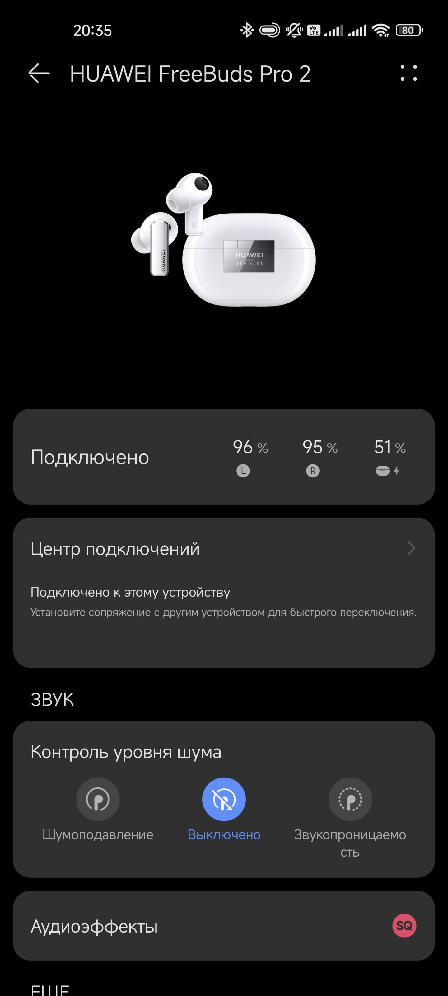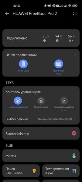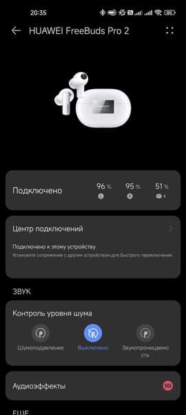 Смартфоны с прошивкой EMUI 10.1 или старше автоматически «находят» и предлагают подключить FreeBuds Pro 2. На других устройствах можно запустить подключение через программу Huawei AI Life, как мы сделали в прошлый раз. Или воспользоваться системным меню — на этот раз мы решили поступить именно так.