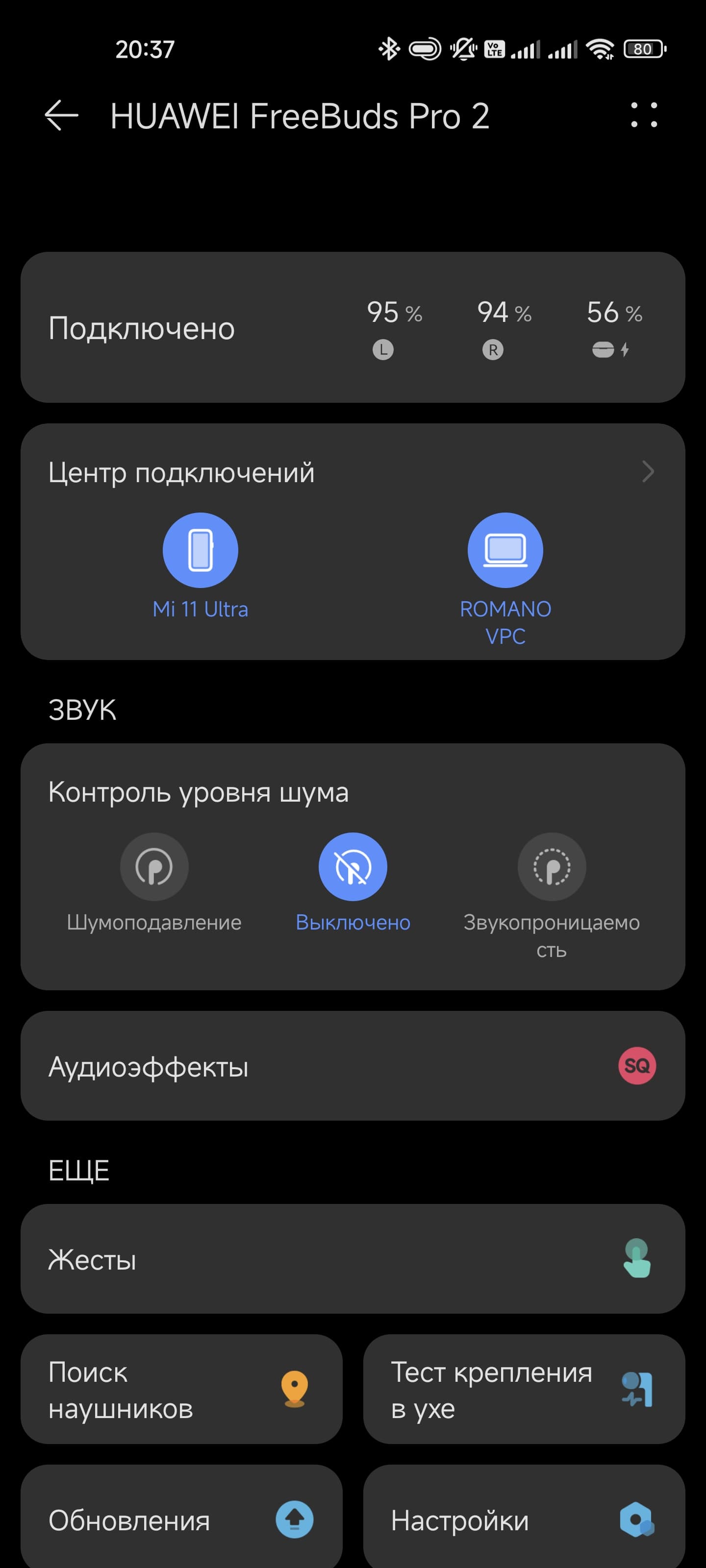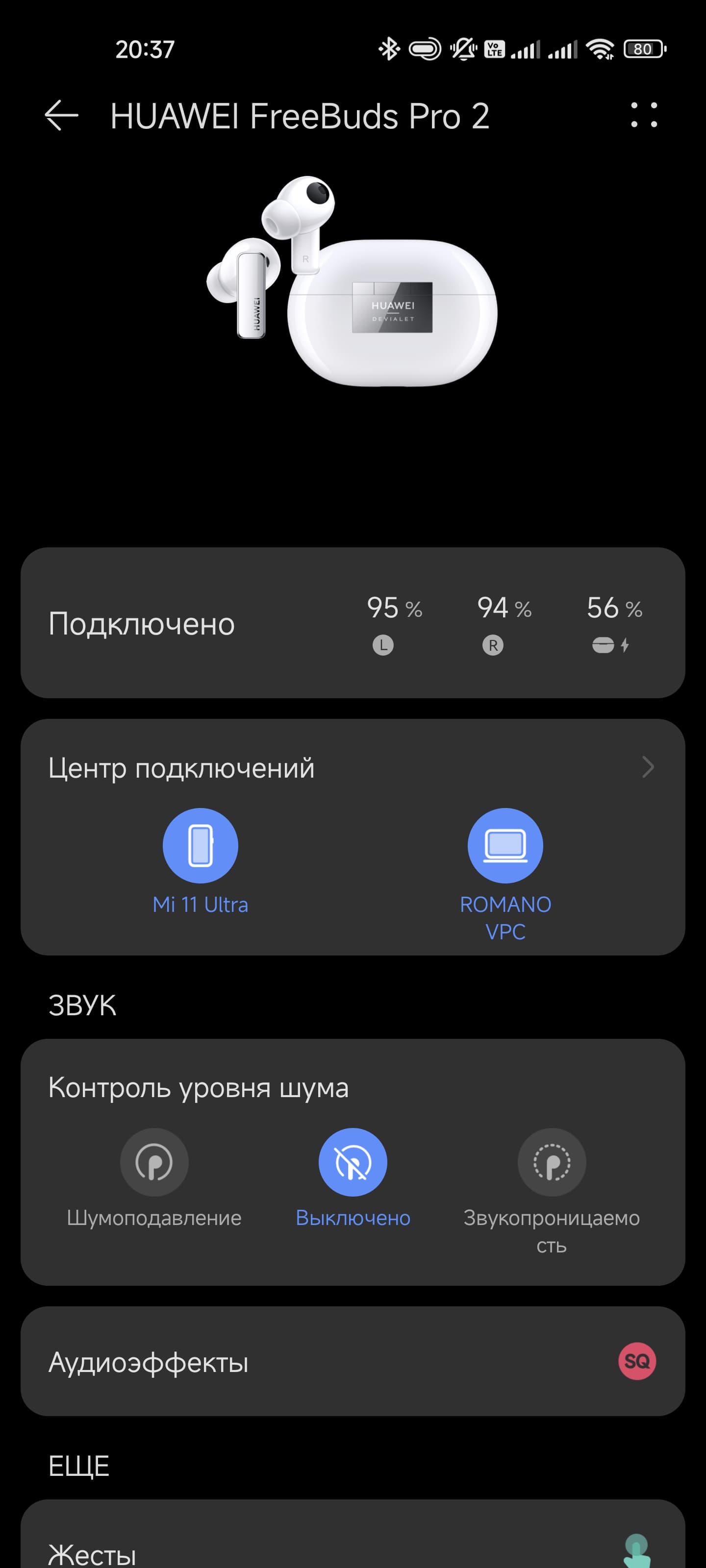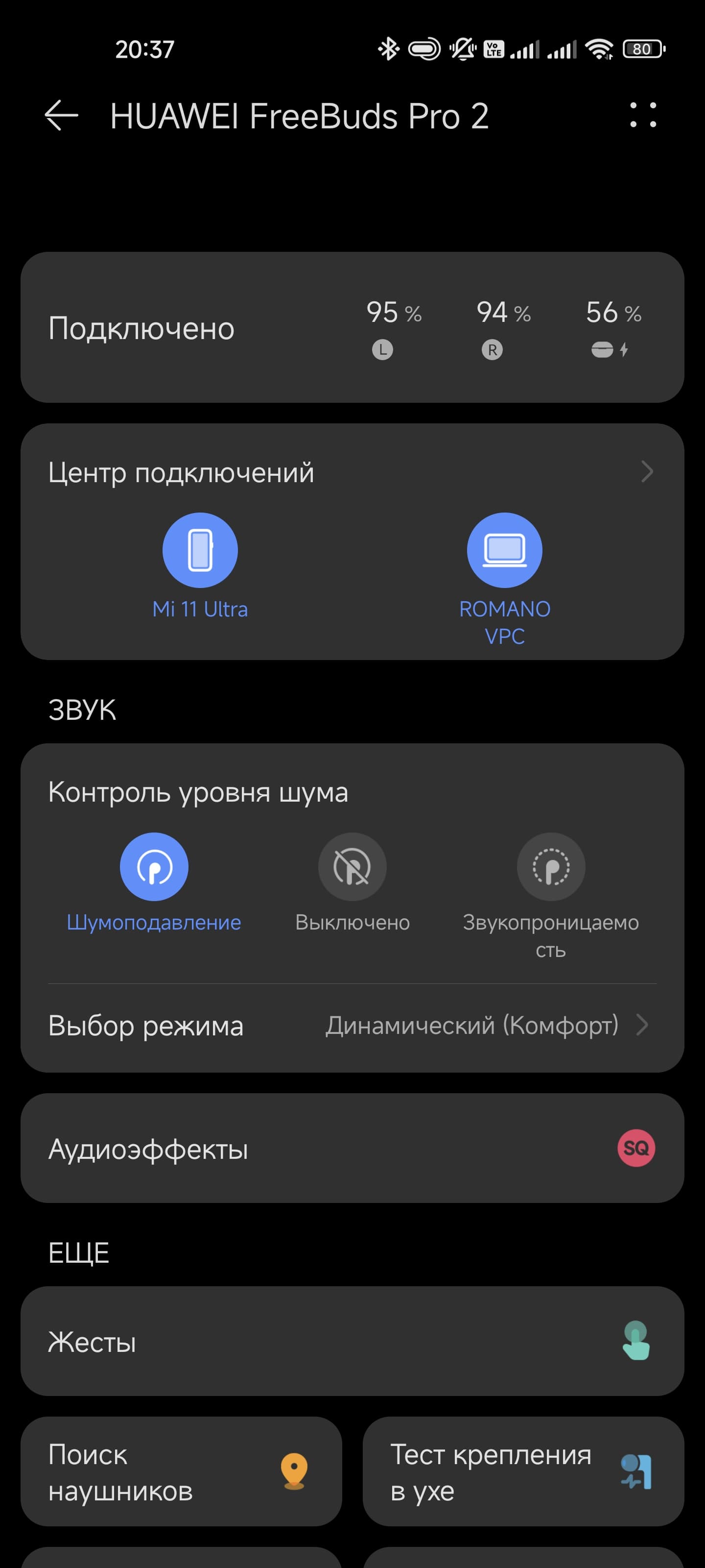 Смартфоны с прошивкой EMUI 10.1 или старше автоматически «находят» и предлагают подключить FreeBuds Pro 2. На других устройствах можно запустить подключение через программу Huawei AI Life, как мы сделали в прошлый раз. Или воспользоваться системным меню — на этот раз мы решили поступить именно так.