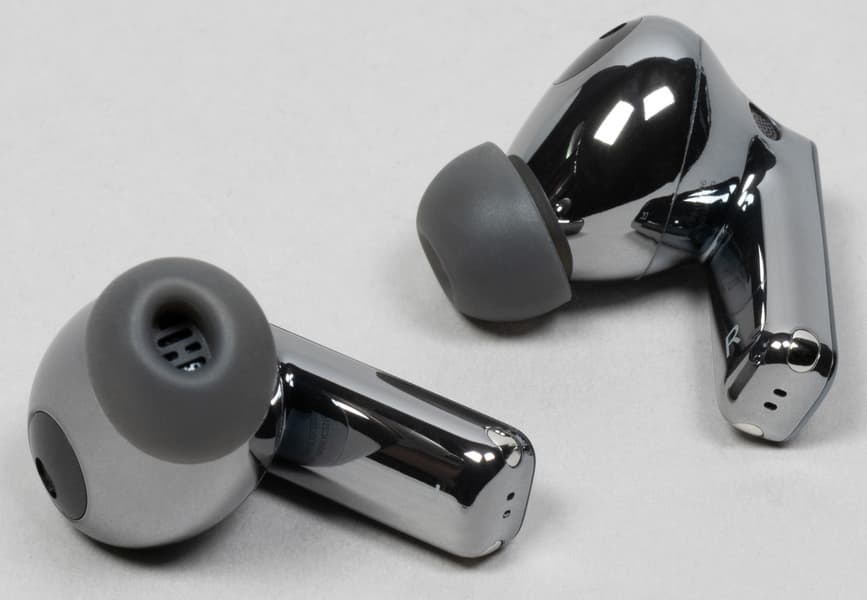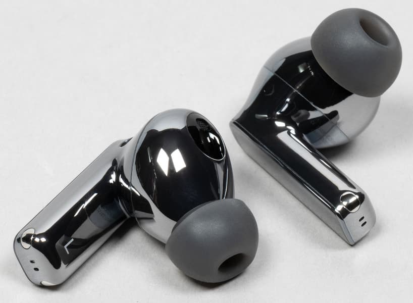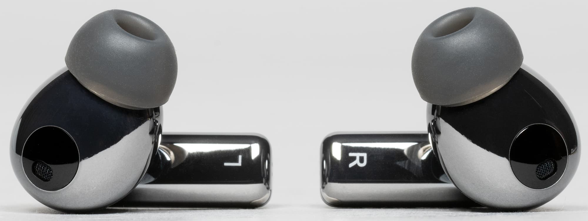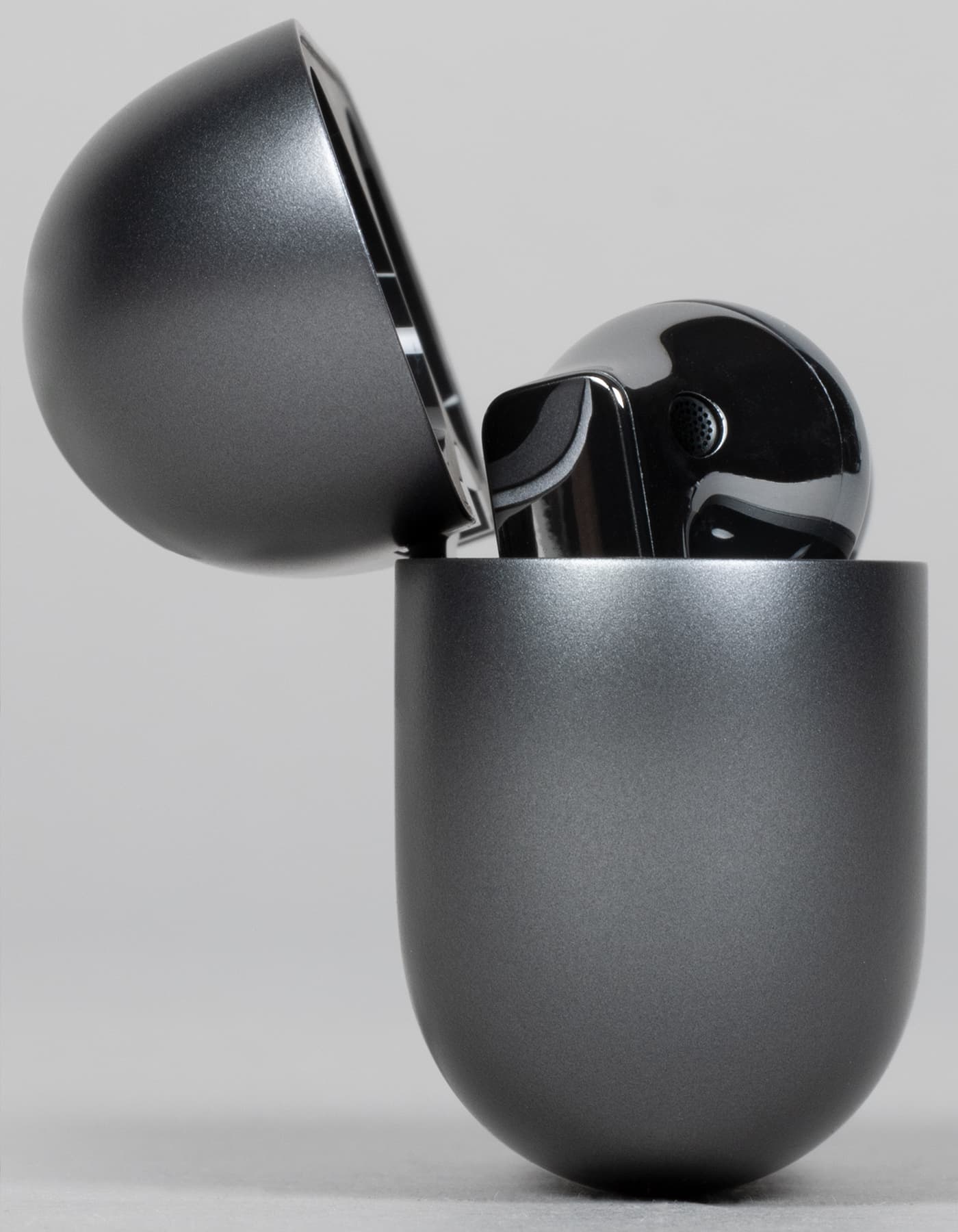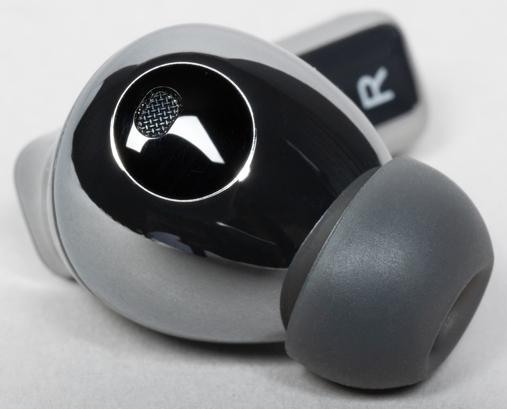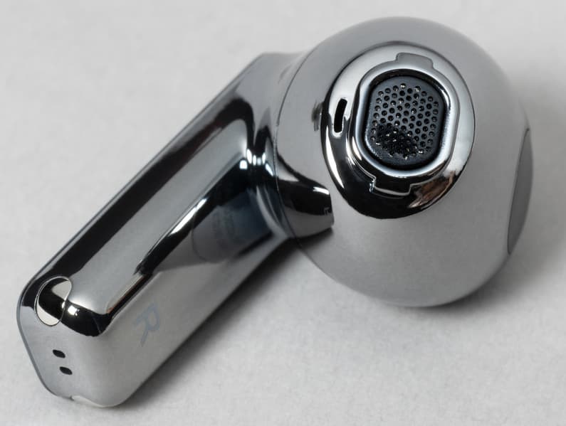 На обращенной внутрь уха при ношении округлой части корпуса расположено закрытое металлической сеткой отверстие микрофонов, служащих для работы системы шумоподавления. Рядом с ними размещены ИК-датчики ношения, прикрытые общей накладкой, пропускающей инфракрасное излучение.