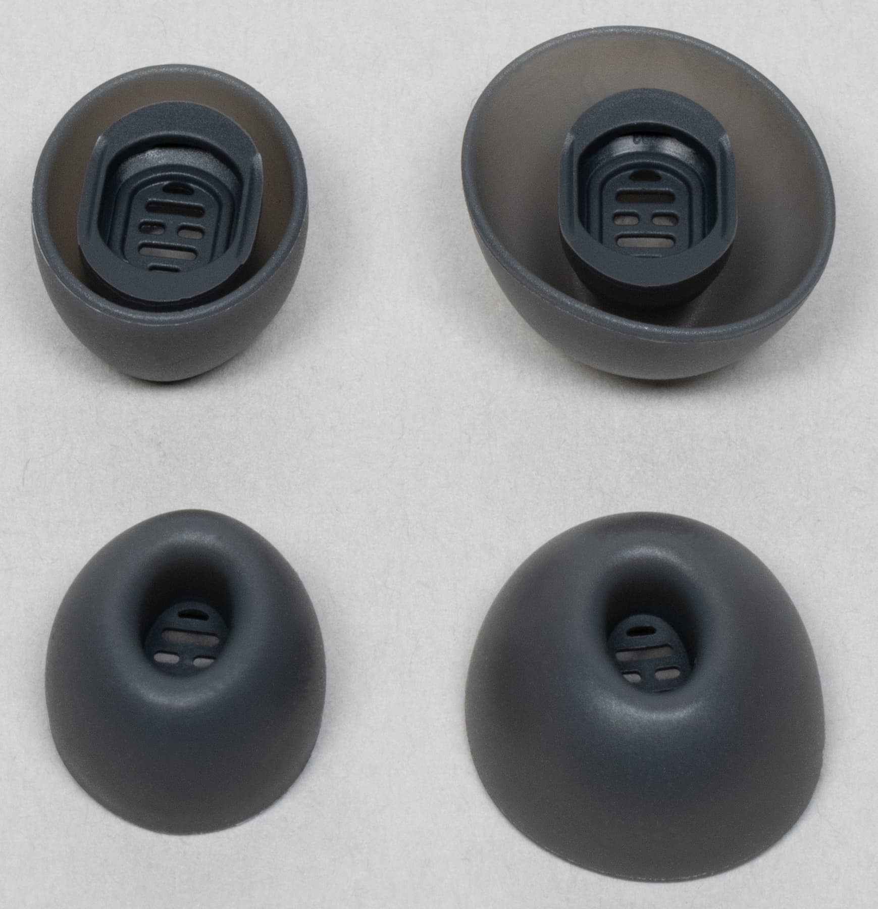 Силиконовые насадки удерживаются выступами на конце звуковода со специальными «лапками», обеспечивающими дополнительную надежность крепления. Снимаются и надеваются обратно амбушюры при этом без лишних усилий.