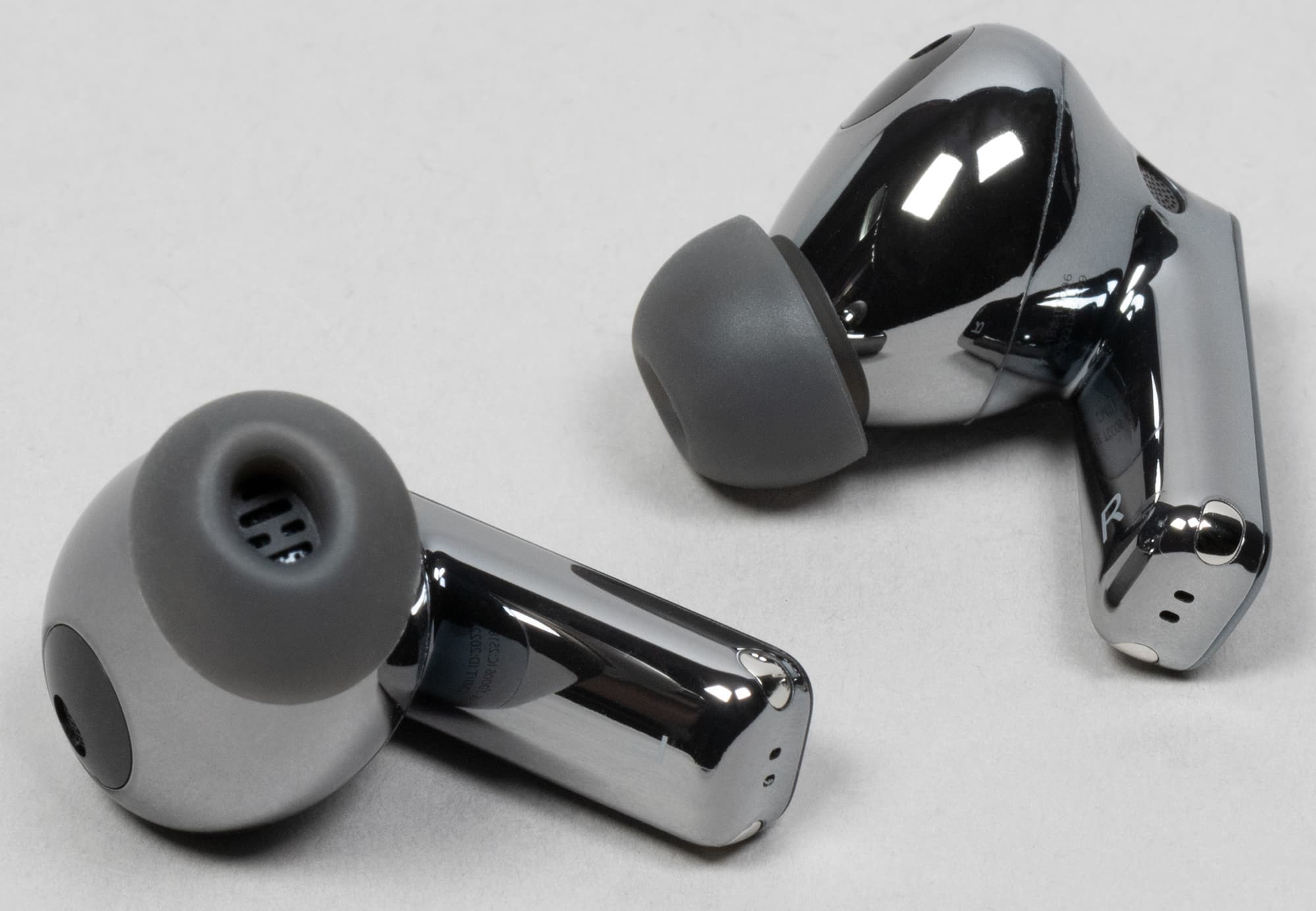 Для голосовой связи используется четыре микрофона, плюс датчик костной проводимости. Последний мы уже видели у Samsung Galaxy Buds Live и остались вполне довольны. Подробнее о технологии костной проводимости можно почитать в одном из наших прошлых обзоров. Качество передачи голоса замечательное, мы специально попробовали ставить гарнитуру в сложные ситуации: говорили в общественном транспорте и возле оживленной автострады, в переполненном кафе и офисе-опенспейсе… Максимум, что могли заметить наши «тестовые собеседники» — это немного непривычная окраска голоса. На его разборчивость никто не жаловался даже когда мы пару раз ответили на звонок из вагона метро.