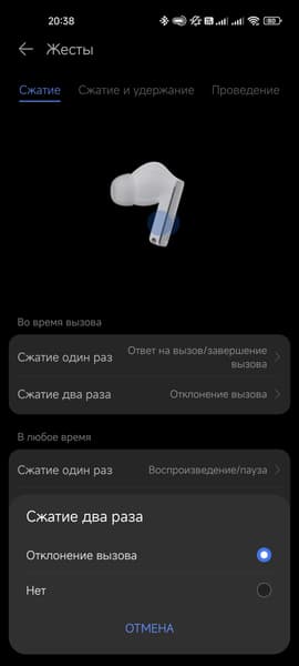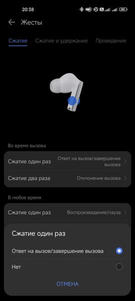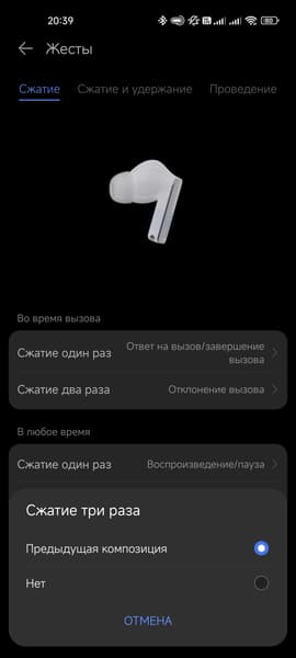 При этом в наушниках раздается мягкий, но отчетливый клик, позволяющий быть уверенным, что действие произведено. Сам сенсор при этом никаких звуков, конечно, не производит — клик имитируется с помощью динамиков наушников просто ради удобства пользователя. Не будем перечислять, какой жест за какие действия может отвечать — все видно на скриншотах.