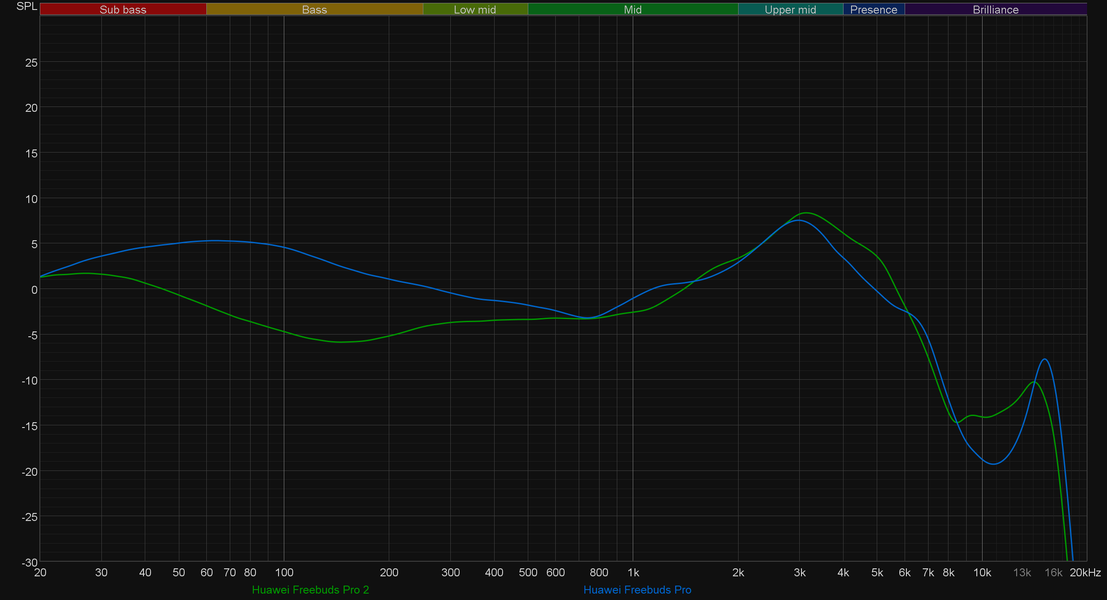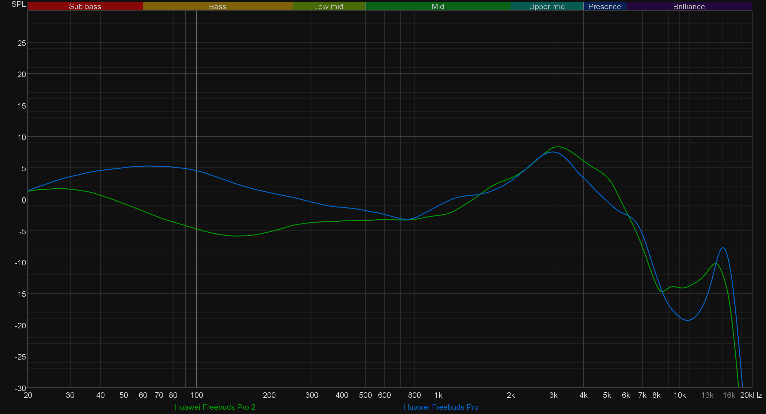 Ну и, конечно, сравним звучание двух версий Huawei FreeBuds Pro. Видно, что различия крайне велики. Во второй разработчики отказались от больших акцентов на басе, сделали более ровной середину — звучит она явно поинтереснее. Специалисты из Devialet — молодцы и отлично справились с поставленной задачей.