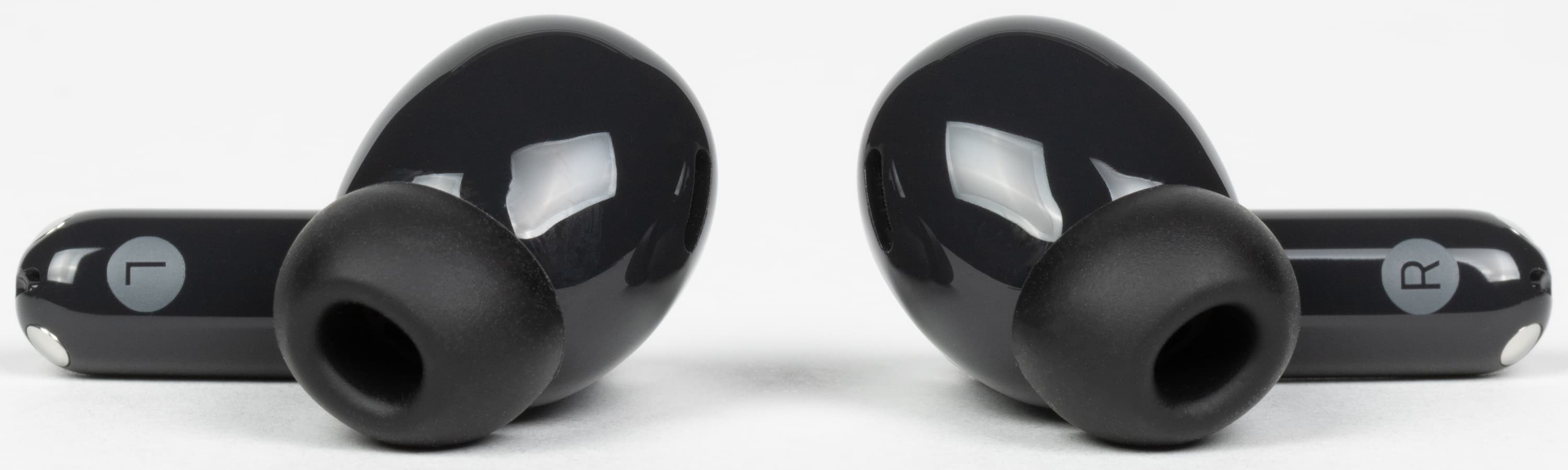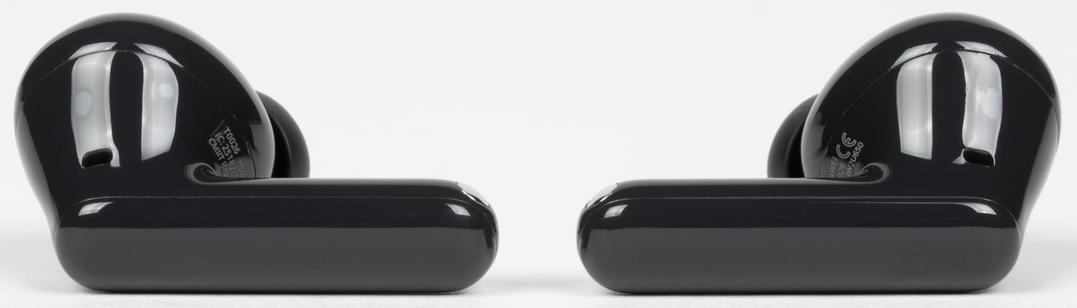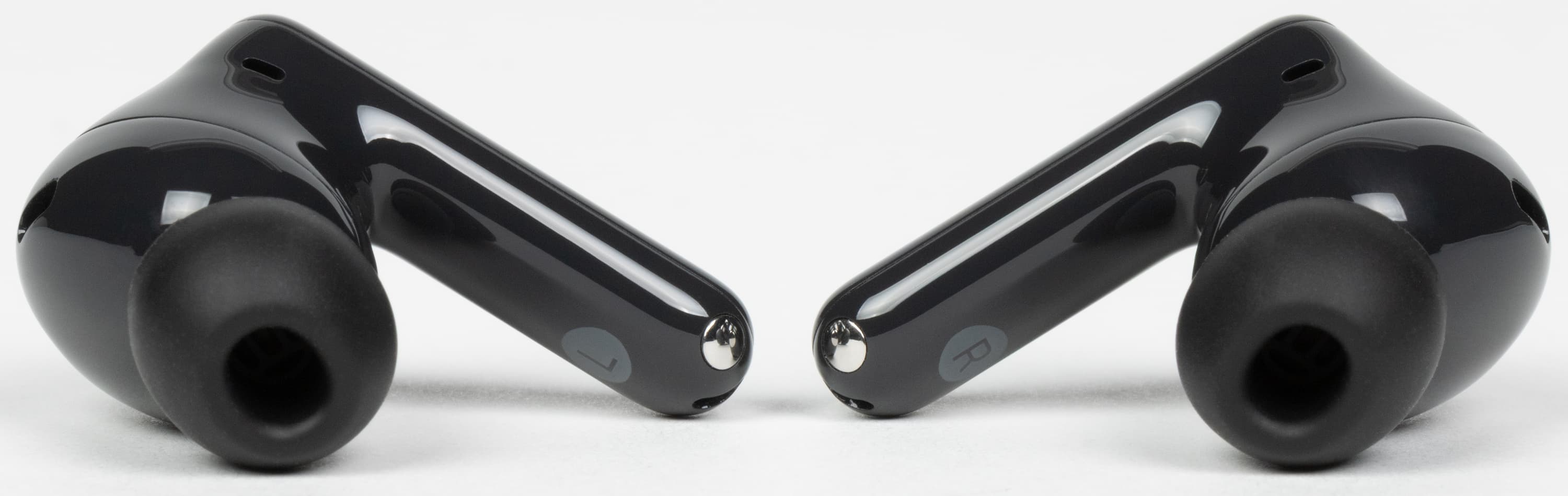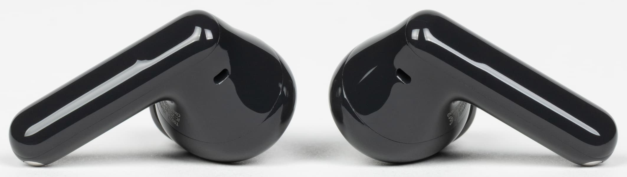 Сенсорные зоны управления расположены в верхней части «ножек» на внешней стороне. Они обозначены небольшими углублениями, но без фактурной поверхности, которую производители часто используют для удобной ориентации на ощупь. В итоге зону найти несложно, хотя и чуть сложнее, чем могло бы быть.