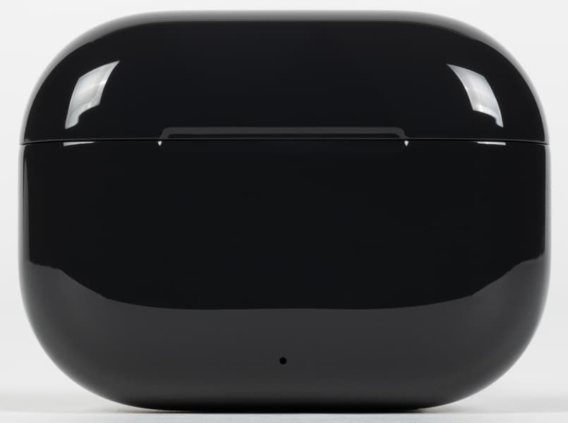 На передней панели под крышкой виднеется небольшая прорезь, призванная облегчить ее открытие. Ниже расположен маленький светодиодный индикатор зарядки и режима сопряжения.