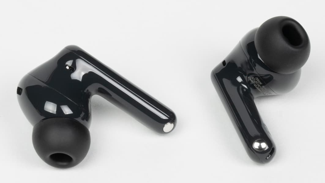 Наушники выглядят вполне обычно по нынешним меркам и лишены ярких деталей. Сделаны они, как и кейс, из глянцевого пластика, который быстро покрывается пятнами от прикосновений.