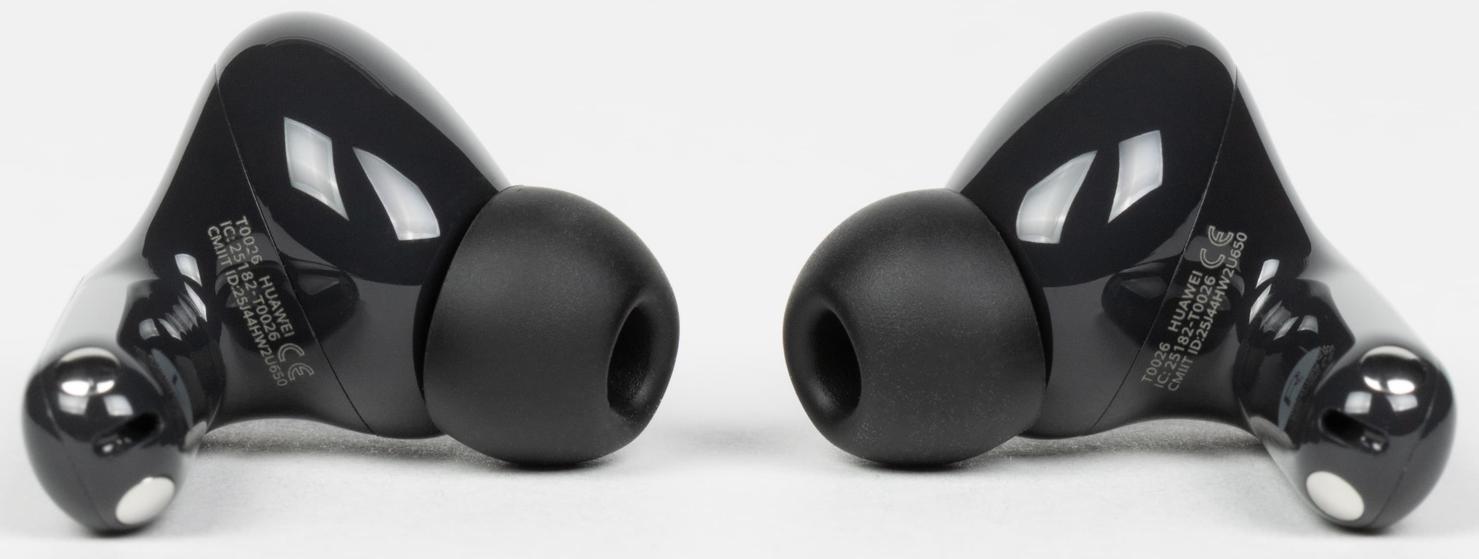 Оформление кейса Huawei FreeBuds SE 3 разработчики сделали максимально эффектным за счет основания со стилизованной под кожу поверхностью и зеркальной крышки. Да и сами наушники выглядели довольно интересно благодаря сочетанию глянцевого и матового пластика. FreeBuds SE 4 ANC же выглядит максимально незатейливо и просто — широко распространенная форма корпуса, минимум декоративных элементов, только глянцевый пластик на внешних поверхностях. Который, кстати, на удивление легко покрывается отпечатками пальцев, которые хорошо заметны даже на черной версии.