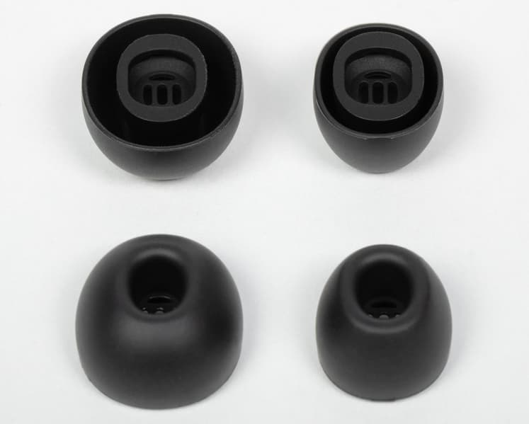 Насадки выполнены из приятного на ощупь силикона и оснащены собственными «сеточками», защищающими звуковод от загрязнений.