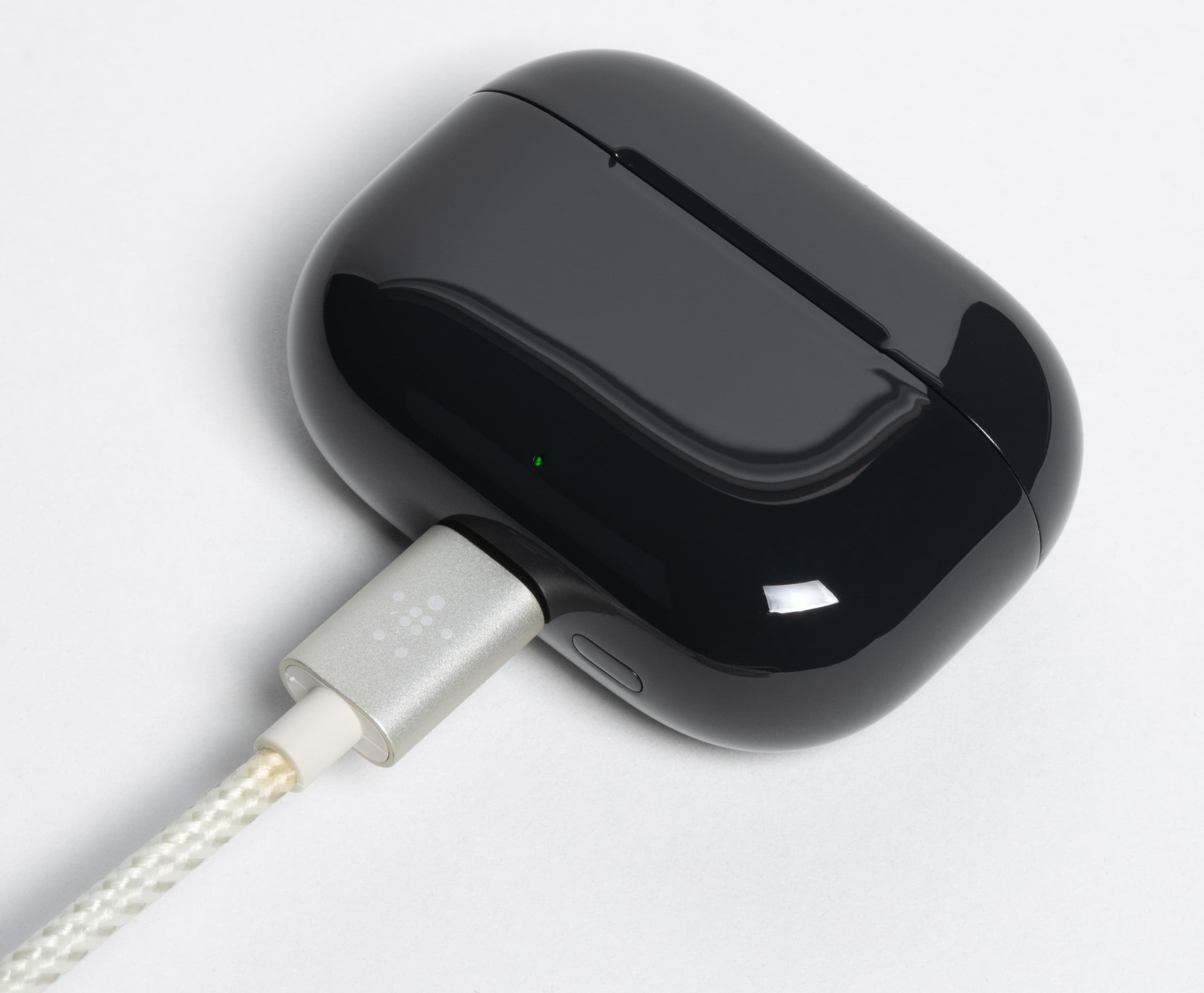 Наушники также поддерживают быструю зарядку: заявлено до 4 часов воспроизведения музыки после 10 минут подзарядки полностью разряженных наушников без шумоподавления. В наших тестах показатели оказались немного ниже 3 часа 40 минут без шумоподавления и около 3 часов 15 минут с ним. В любом случае этого более чем достаточно, чтобы подзарядить внезапно разрядившиеся наушники перед прогулкой или тренировкой. А вот за зарядкой кейса придется все же следить — тут ничего не поделаешь. Он способен полностью зарядить наушники до шести раз, так что суммарная автономность гарнитуры может превышать заявленные на коробке 50 часов даже при постоянном использовании активного шумоподавления.