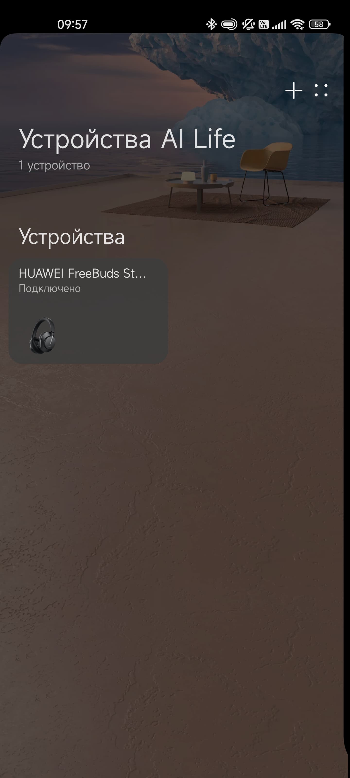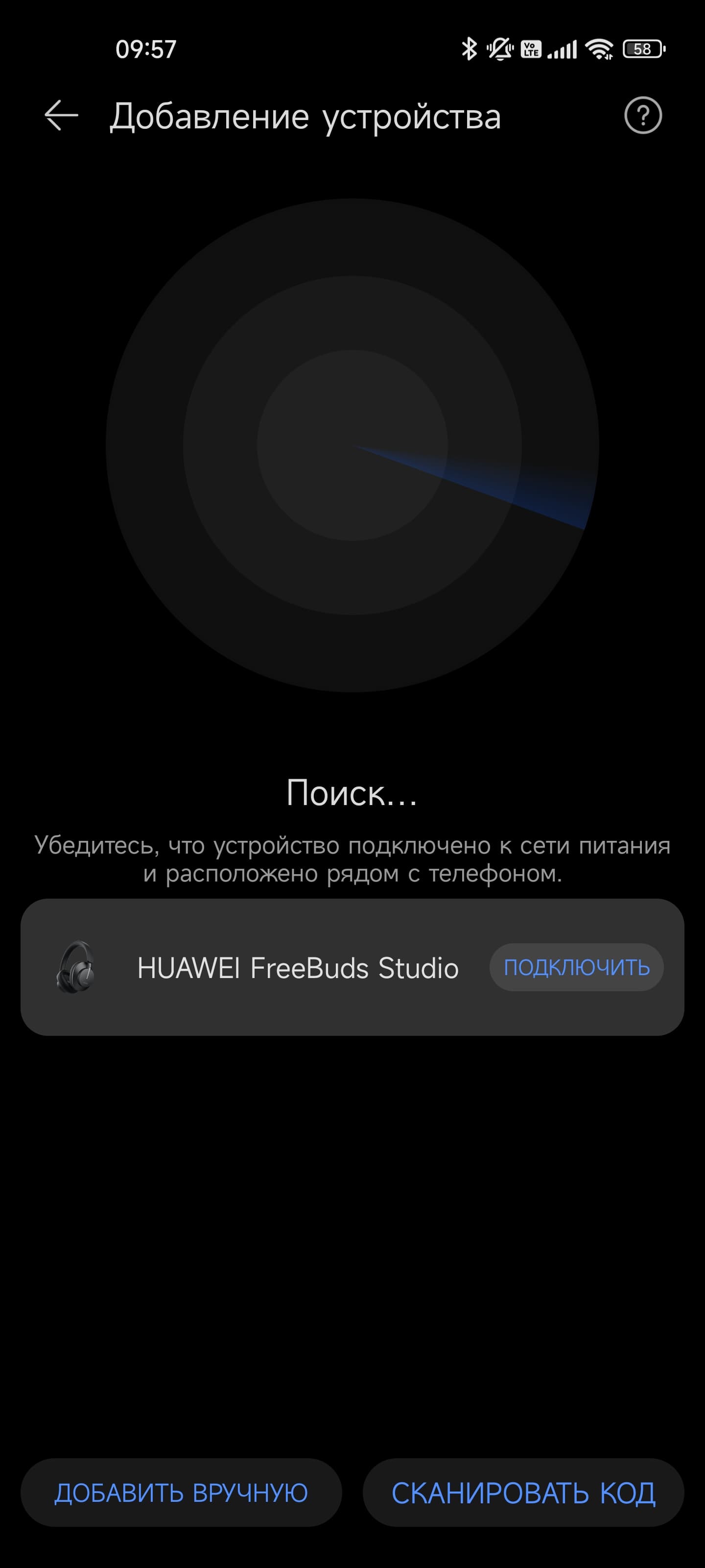 Для запуска сопряжения на FreeBuds Studio есть отдельная кнопка — ее мы еще увидим чуть ниже. Нажимаем, открываем AI Life, кликаем по надписи «Добавить устройство». Через несколько секунд видим предложение установить соединение — соглашаемся. Вот и все, наушники появляются в списке на главной странице. Весь процесс занимает порядка минуты.
