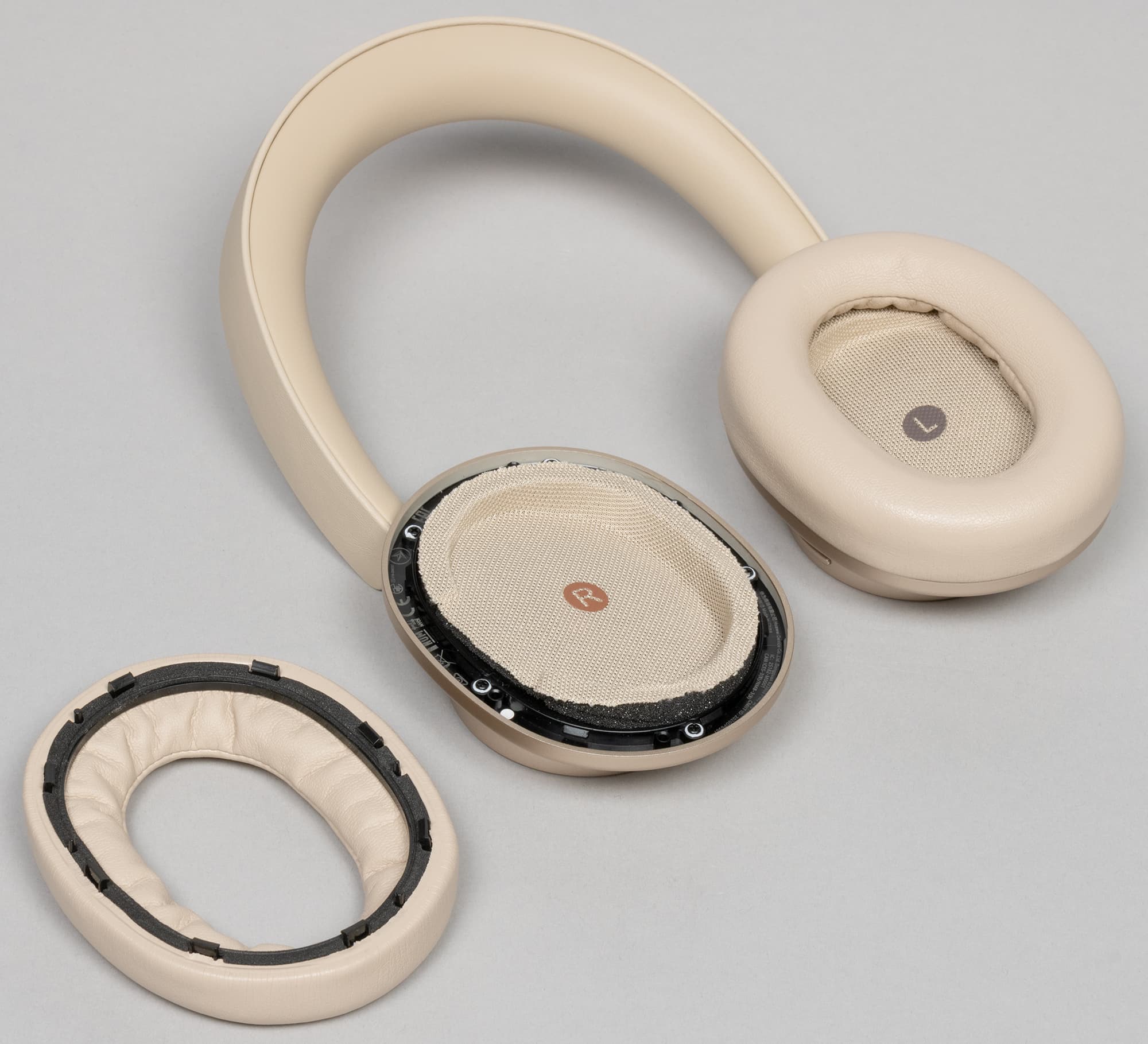 Амбушюры мягкие, выполнены из приятной на ощупь искусственной кожи. Снимаются они вместе с пластиковым основанием. Защелки чуть туговаты, но при этом в процессе демонтажа не возникает опасений, что они сломаются. Комплект сменных амбушюров и внутренних вкладок мы без проблем нашли на просторах «китайшопов».