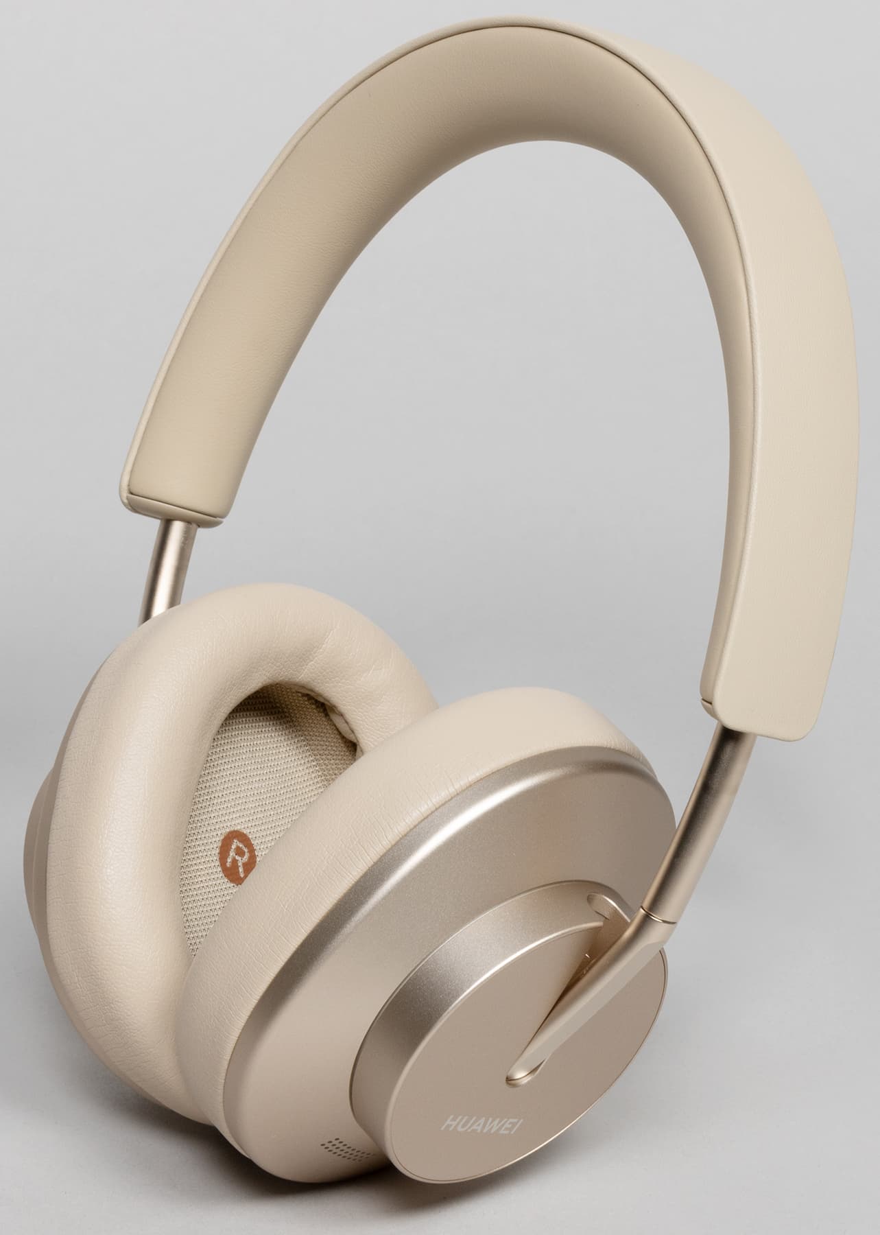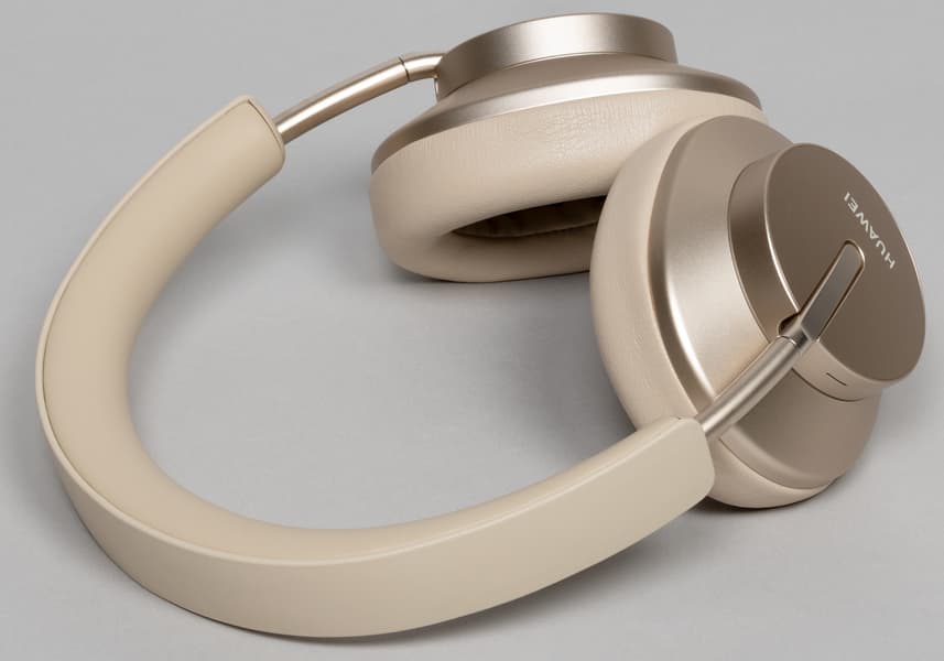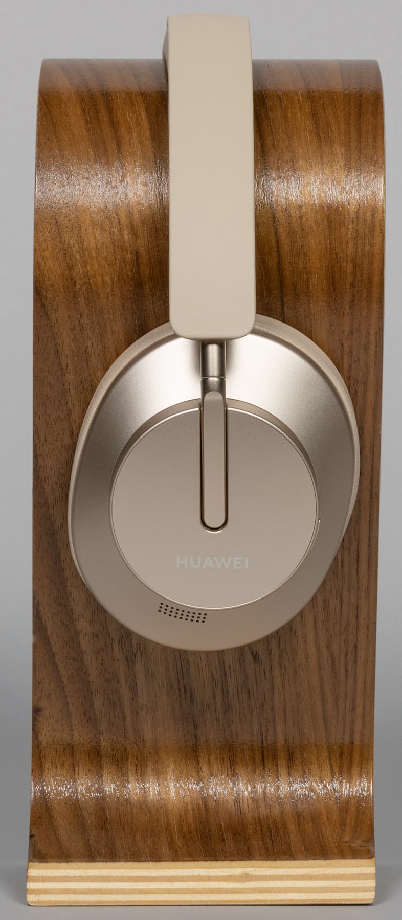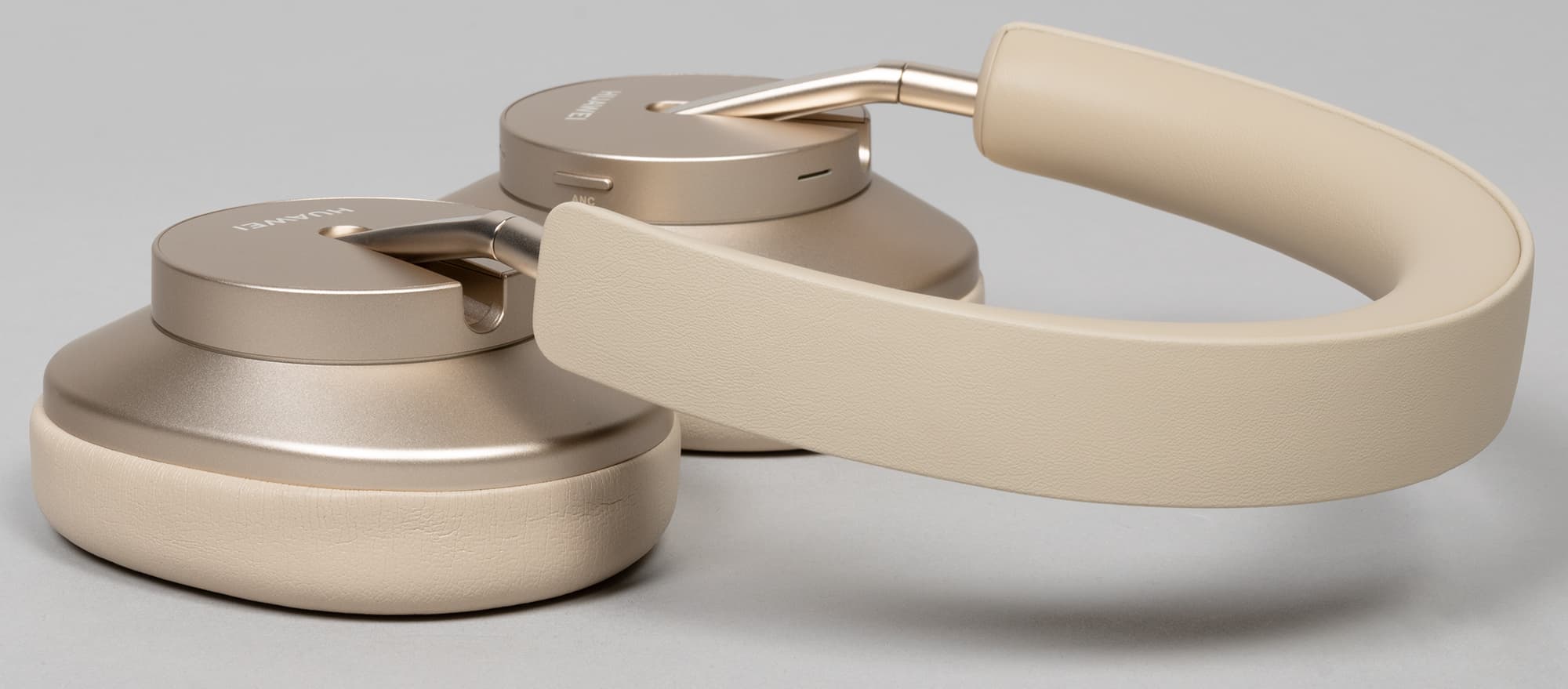 Huawei FreeBuds Studio прекрасно сидят на голове — удобно, но при этом стабильно и надежно. Давление дуги на голову подобрано отлично, при ношении чашки немного наклонены, что видно на иллюстрации ниже. Размер амбушюров составляет 65×40 мм — они полностью обхватывают ухо, что позволяет добиться внушительного уровня пассивной звукоизоляции. Но что самое интересное, ушам не становится жарко даже после часа непрерывного ношения — вероятно, это связано с «побочным действием» уже упомянутой технологии Tee Audio Tube, которая выравнивает давление внутри и снаружи чашки. Наличие «канала связи» с внешней средой, по всей видимости, позволяет выровнять еще и температуру.