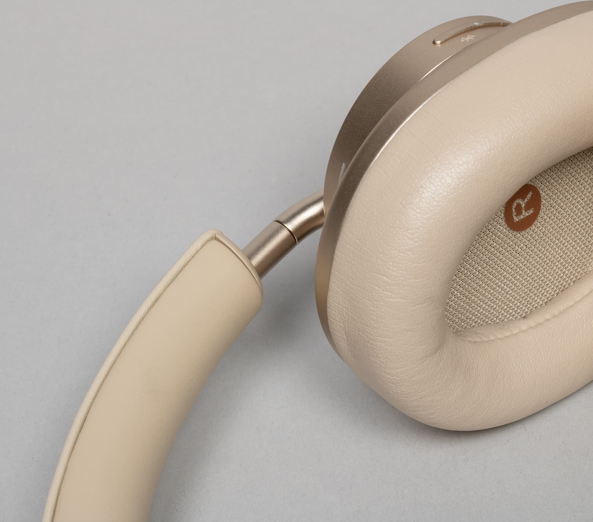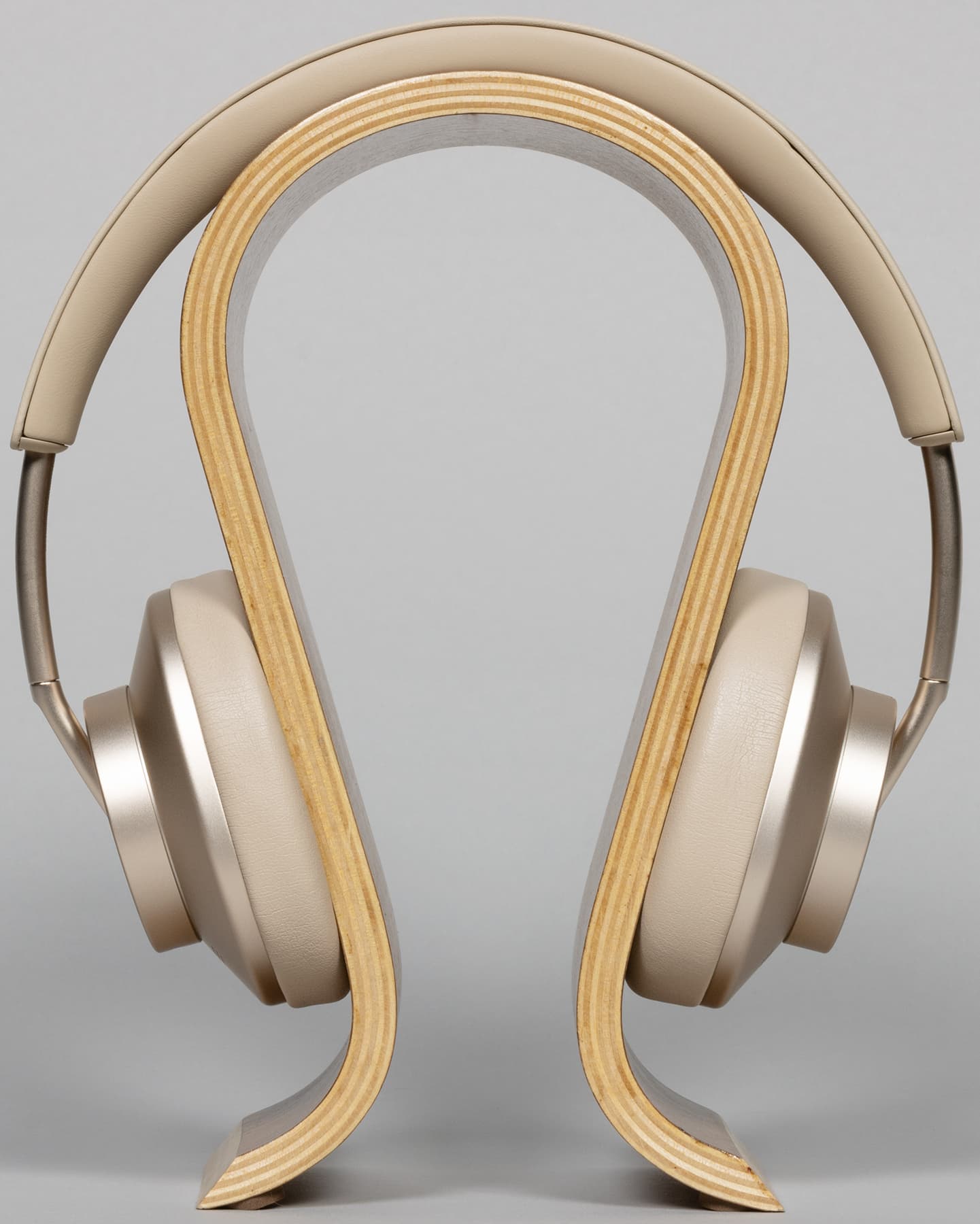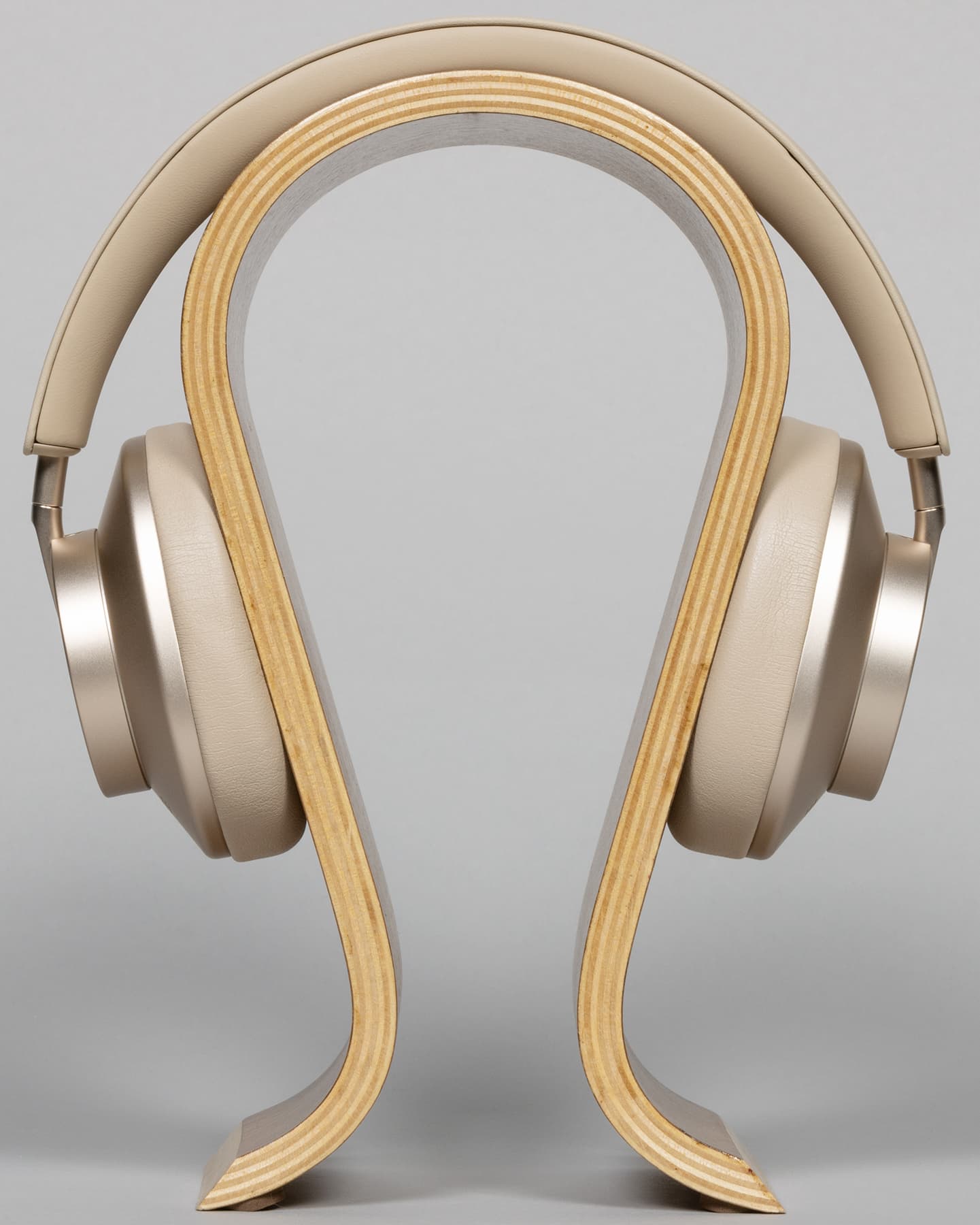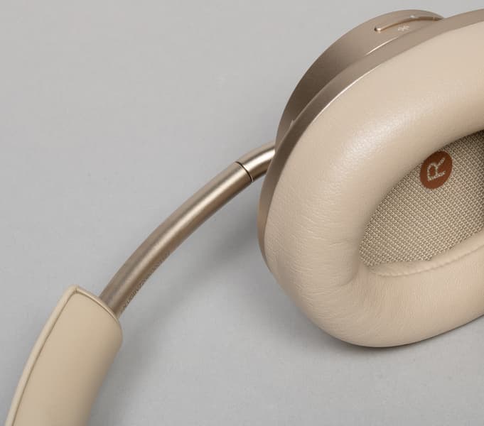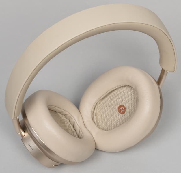 Внутренняя часть дуги выполнена из кожзаменителя. По центру размещен мягкий наполнитель, слева и справа прощупываются твердые детали, обеспечивающие регулировку положения чашек. Рядом с креплением чашки виднеются щелевидные отверстия. За ними, вероятнее всего, скрываются микрофоны системы активного шумоподавления, также они могут использоваться для реализации технологии Tee Audio Tube, суть которой состоит в наличии канала, выравнивающего давление внутри и снаружи наушника.