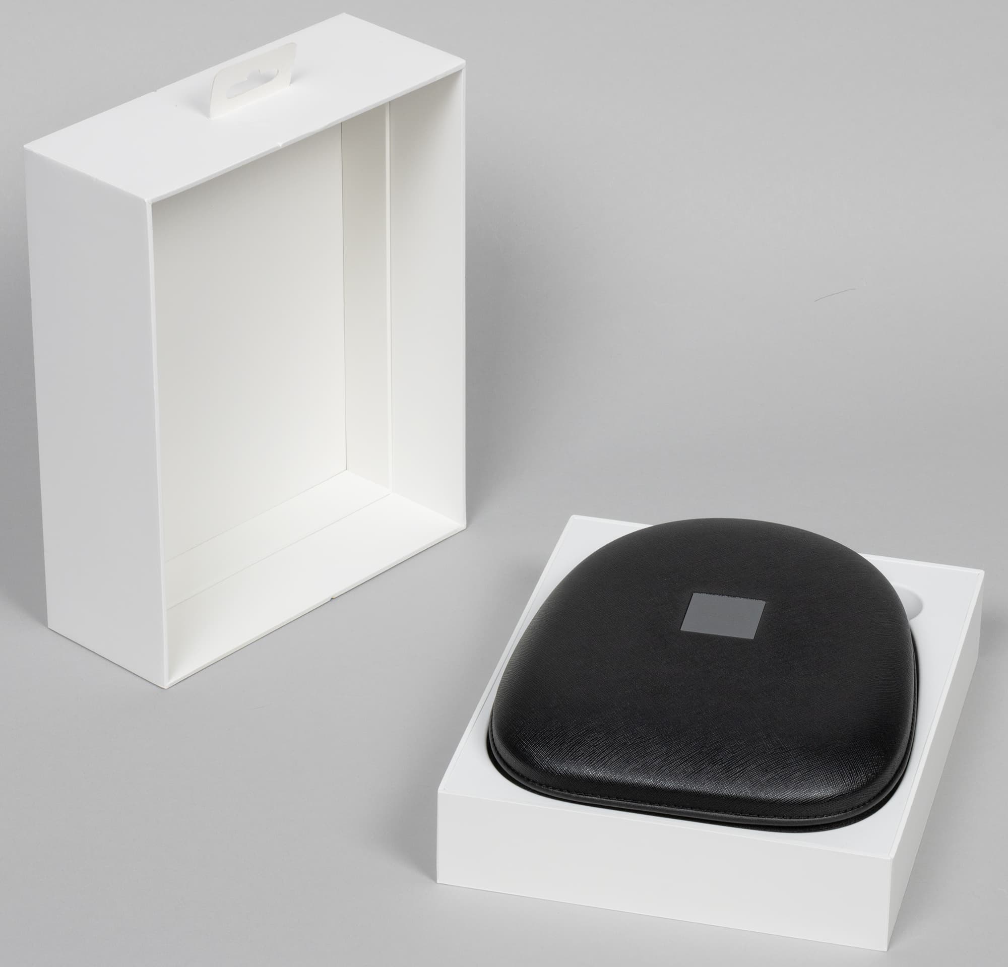 Упакованы наушники в белую коробку из плотного картона, на лицевую сторону которой нанесены изображение устройства и его название, а также логотип производителя. Тиснение золотистой фольгой привлекает внимание, но в целом оформление упаковки остается довольно сдержанным — в лучших традициях так называемого «премиального сегмента».