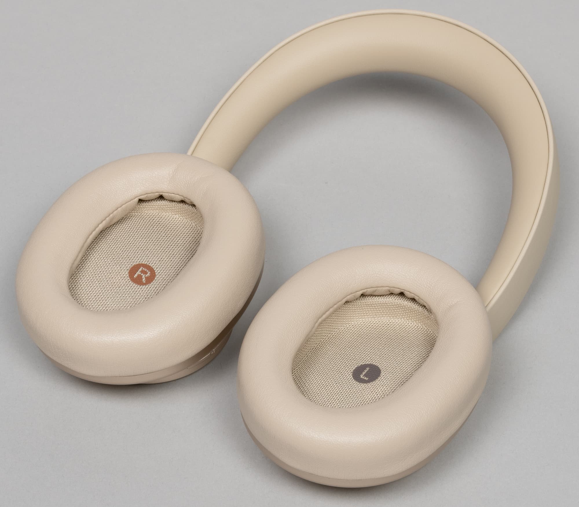 Отверстия динамиков прикрыты вкладками из пенистого материала, на тканевую основу которых нанесены обозначения правой и левой чашки.