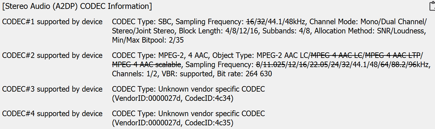 | Поддерживаемые кодеки | SBC, AAC, L2HC |