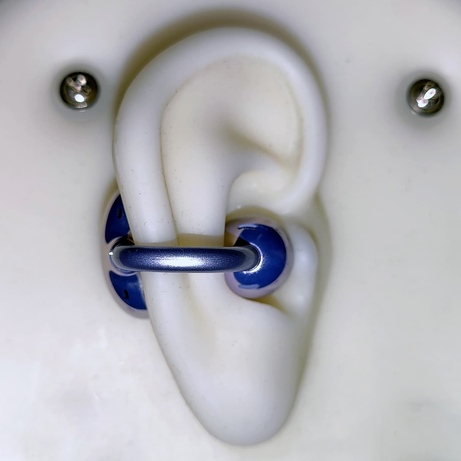 Каждый наушник состоит из трех частей: элемента в форме фасоли, еще одного в форме шара и эластичного коннектора, который производитель называет «C-bridge Design».