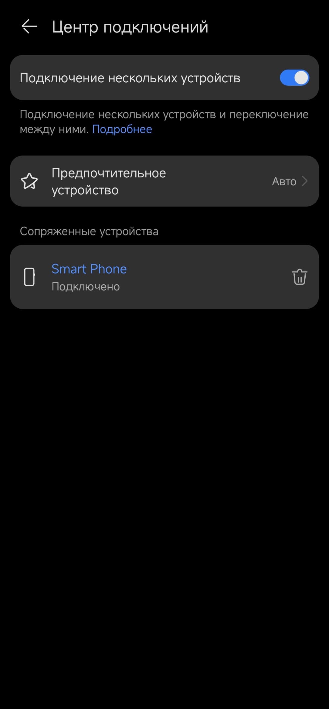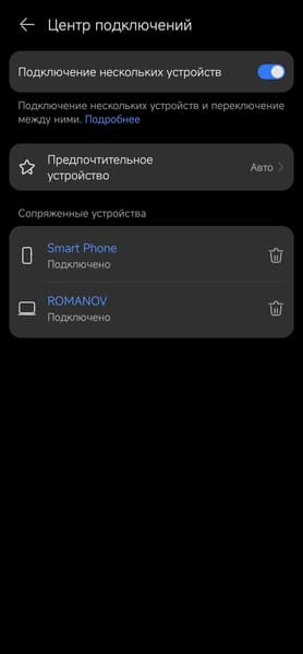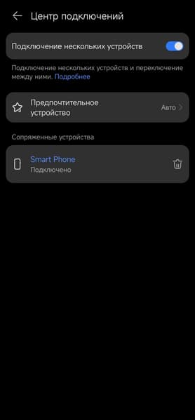 В «центре подключений» можно настроить работу мультипойнта — в частности, выбрать предпочитаемое устройство. Особых причин делать это вновь нет — в автоматическом режиме всё работает максимально корректно и удобно.