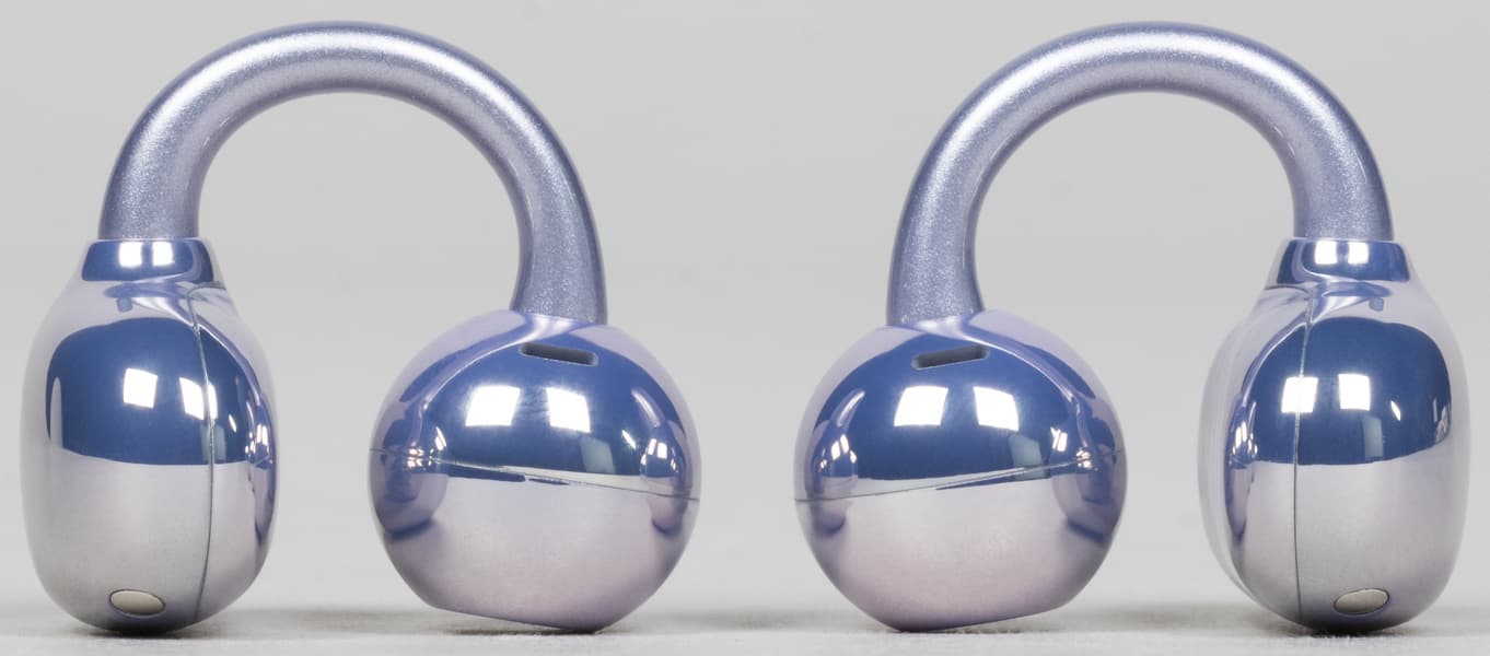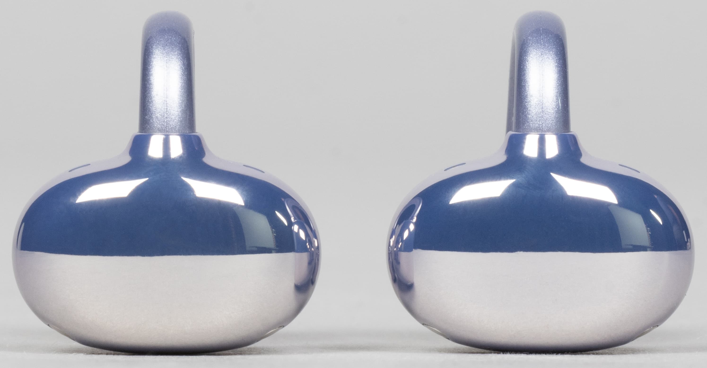 Huawei FreeClip похожи то ли на клипсы, то ли на сережки, то ли на так называемые каффы — в маркетинговых материалах используется именно этот термин. Удерживаются на ухе они с помощью двух округлых элементов и специальной дуги, звуковод при этом не проникает внутрь слухового прохода как это происходит у внутриканальных решений. Соответственно, получается такая «полуоткрытая» конструкция, что оказывает влияние и на комфорт использования, и, главное, на звучание гарнитуры.