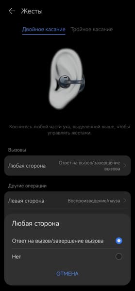 Управление можно настроить в AI Life, но количество доступных вариантов не очень-то велико. Одинарное касание заблокировано во избежание случайных срабатываний — в случае с регистрацией тапов микрофонами эта мера совершенно точно оправдана.