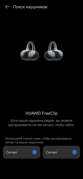 Смартфоны со свежими прошивками EMUI автоматически «находят» и предлагают подключить Huawei FreeClip сразу после открытия крышки кейса, то же самое неожиданно сделал ноутбук под управлением Windows 11. Также возможно подключение «классическим» способом — через меню мобильного устройства. После первого открытия крышки процесс сопряжения запускается автоматически, позднее его можно активировать с помощью кнопки на кейсе.