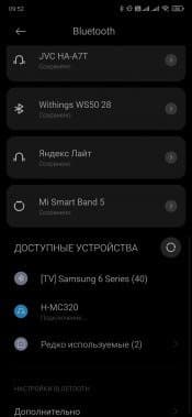 При активации Bluetooth-подключения колонка сначала пытается подключиться к «знакомым» устройствам, если не обнаруживает их — запускает сопряжение. В общем, все как обычно. Далее находим колонку в меню гаджета и подключаем.