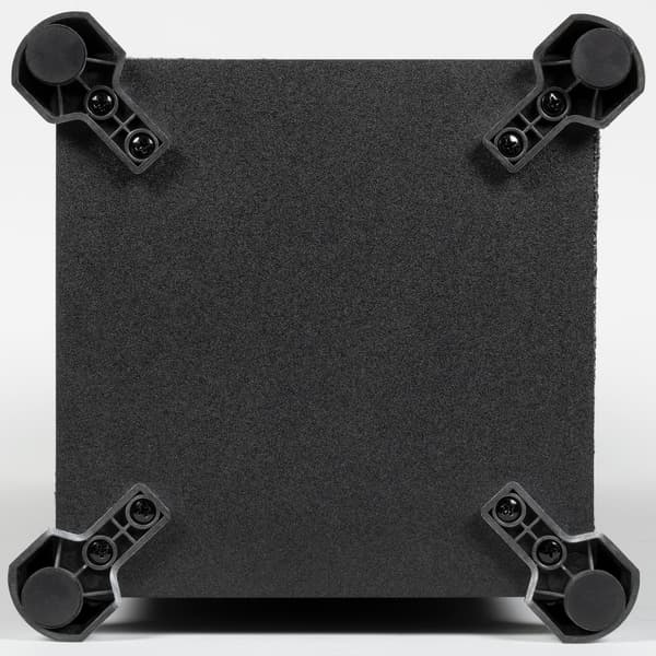 На дне корпуса расположены ножки. Выполнены они из пластика, но отделаны «под металл» — выглядят приятно. Колонка не слишком тяжелая — всего около 7 кг, потому особых опасений по поводу их надежности не возникает.