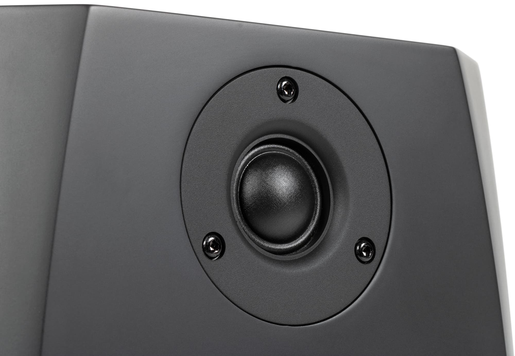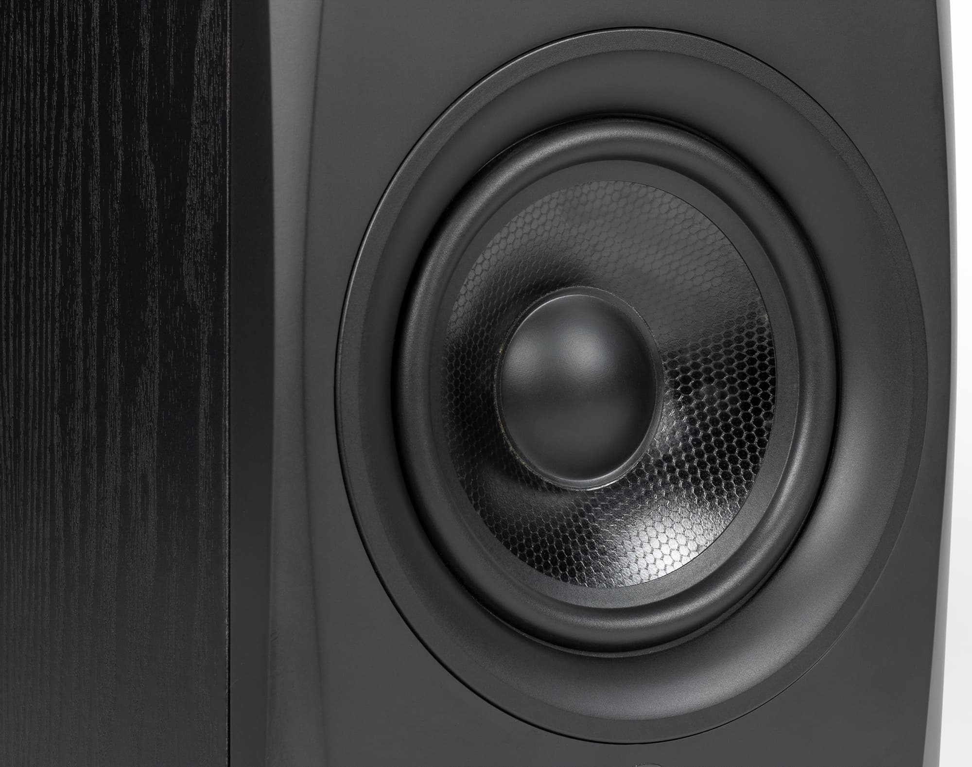 Прочие характеристики выглядят не менее интересно. За низкие и средние частоты отвечает 5,5-дюймовый вуфер с алюминиевым конусом, за высокие — 1-дюймовый шелковый твитер с охлаждением ферромагнитной жидкостью, которая не только служит для отвода тепла от катушки, но и выступает в качестве дополнительного демпфера, помогающего избавиться от лишних резонансов.