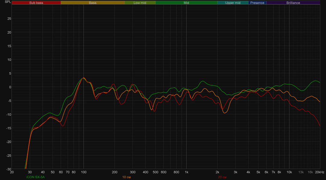 Середина подается детализировано и с хорошей артикуляцией. Да, конечно, график в этой области не идеально ровный, но все же он очень близок к тому, что могут предложить нам многие из мониторов, цена которых за одну штуку сопоставима со стоимостью комплекта из пары iCon SX-5A. С ВЧ-регистром тоже все очень и очень неплохо: он вполне сбалансирован и воспроизводится без каких-либо характерных для него проблем.