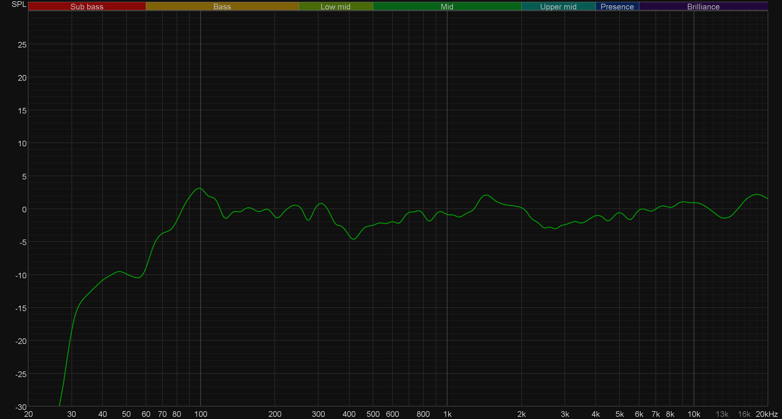 В районе 400 Гц есть маленький провал, хотя эта область очень важна с точки зрения «естественности» звучания музыкального материала — именно там находятся основные частоты струнных, клавишных и перкуссий. Также эту зону часто называют ответственной за субъективно воспринимаемое качество вокала. К счастью провал там не настолько велик, чтобы серьезно повлиять на звучание акустики в целом — на слух он воспринимается гораздо менее резко, чем выглядит на графике.