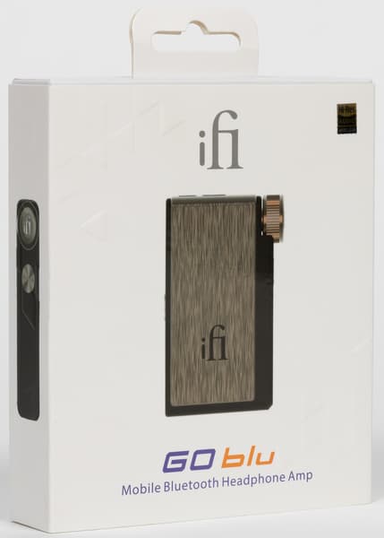 Поставляется iFi Go blu в маленькой белой коробке со съемной крышкой, на «суперобложку» которой нанесено изображение устройства. Внутри сам ЦАП/усилитель дополнительно защищен пластиковым пакетом и удерживается с помощью поролонового ложемента. Аксессуары помещены в отдельную коробку.