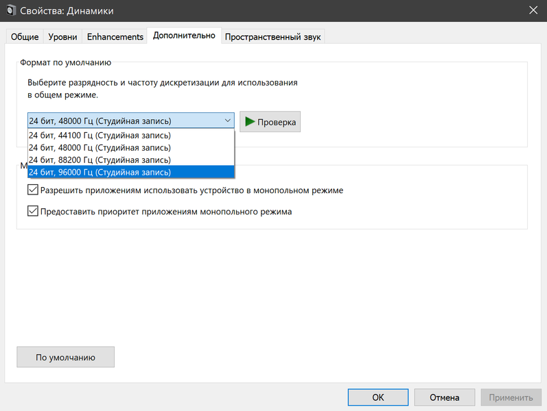 При подключении к компьютеру никаких дополнительных драйверов устанавливать не нужно — все работает и так. Поддерживается сигнал до 24 бит/96 кГц, все как заявлено. При воспроизведении MQA устройство может работать только как рендерер, декодирование выполняется на стороне ПК.