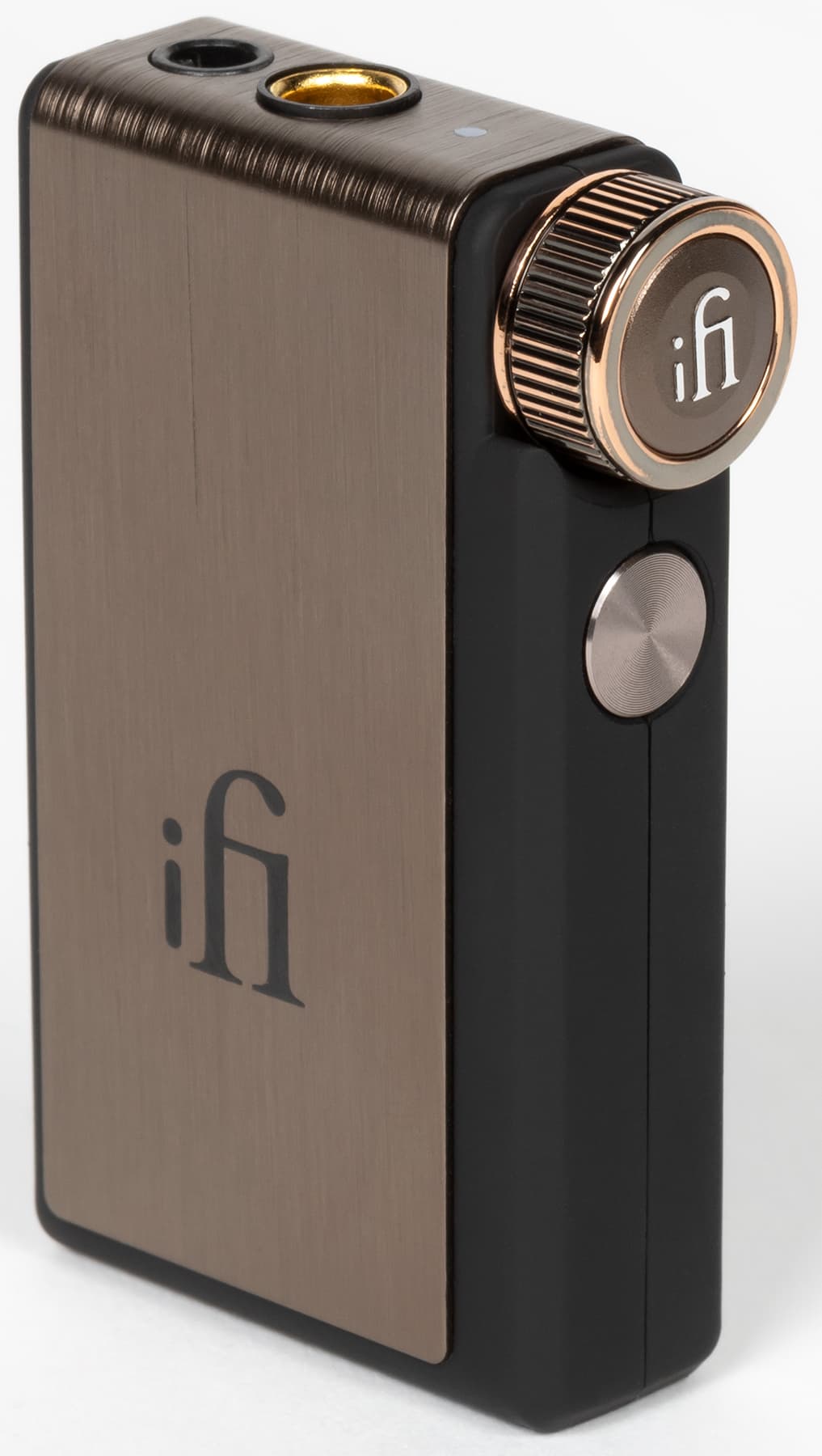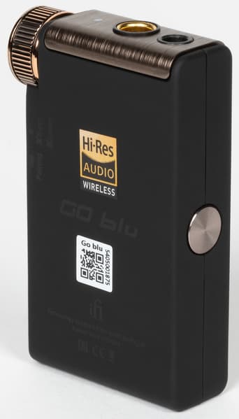 Вернемся к управлению iFi Go blu. Поворотный регулятор на правой стороне корпуса — валкодер без ограничения угла вращения, производящий изменение громкости. Внутри него расположена кнопка, которая отвечает за несколько действий.