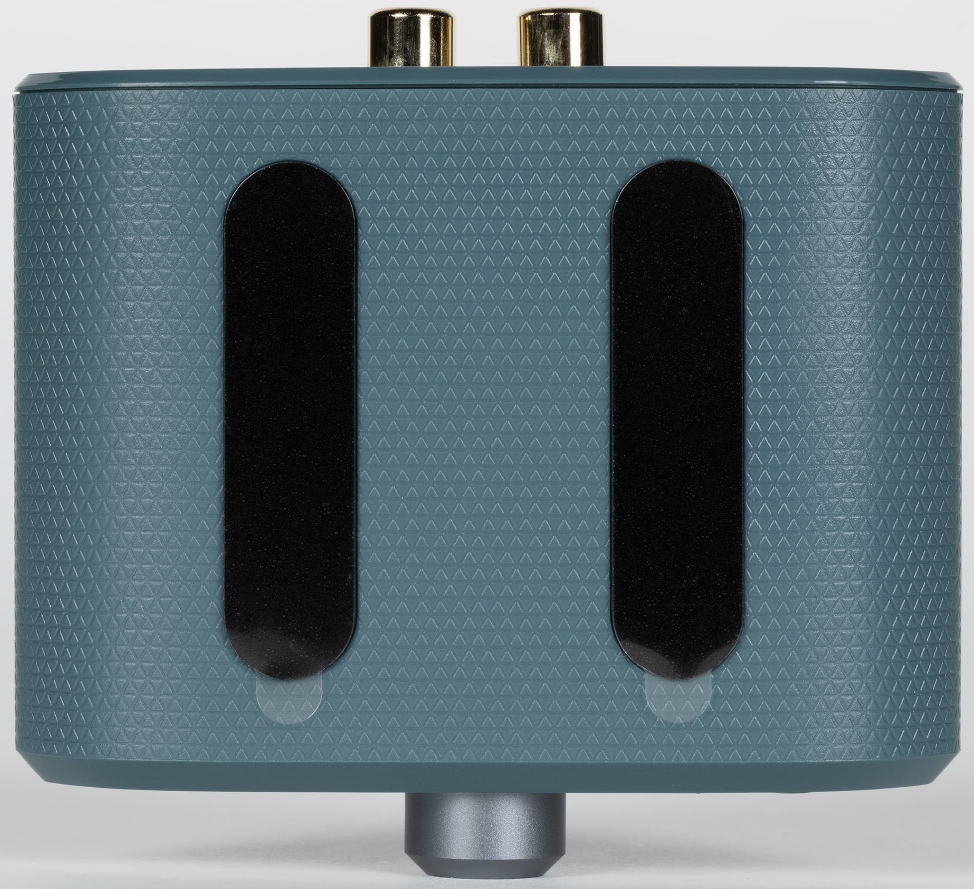 Форма корпуса у всей линейки очень узнаваемая, а вот материал разный — в более дорогих моделях используется металл, в бюджетных — пластик. У iFi Uno сам корпус, естественно, пластиковый, а вот передняя и задняя стенка сделаны из алюминия. Окраску производитель называет Air Force Blue — по всей видимости, речь идет о фирменном серо-голубом цвете британских военно-воздушных сил. Спереди и сзади размещены панели для подключения и управления устройством, их наполнение мы подробно разберем в соответствующих главах обзора.