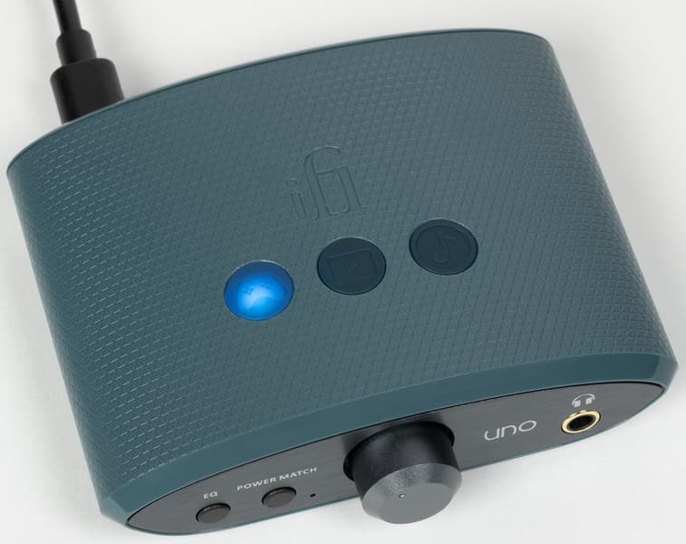 Кнопка Power Match слева от регулятора громкости позволяет повысить коэффициент усиления при использовании «тугих» наушников с высоким импедансом. Мы вновь попробовали подключить к тестируемому устройству все, что оказалось под рукой. Начали как всегда с низкоомных китайских гибридных моделей, потом перешли на полноразмерные Audio-Technica ATH-M50x — все предсказуемо отлично. Далее в ход пошли внутриканальные Soundmagic E80, обладающие довольно высоким для IEM импедансом 64 Ом — тут уже появился повод нажать кнопку Power Match, хотя запаса по громкости было достаточно. Ну закончили мы Beyerdynamic DT 990 Pro с импедансом 250 Ом, которые усилитель вполне «раскачал», но все же не смог полноценно раскрыть. Однако надо заметить, что высокоомные наушники — удел профессионалов и «продвинутых» любителей звука, которые явно не являются целевой аудиторией iFi Uno.
