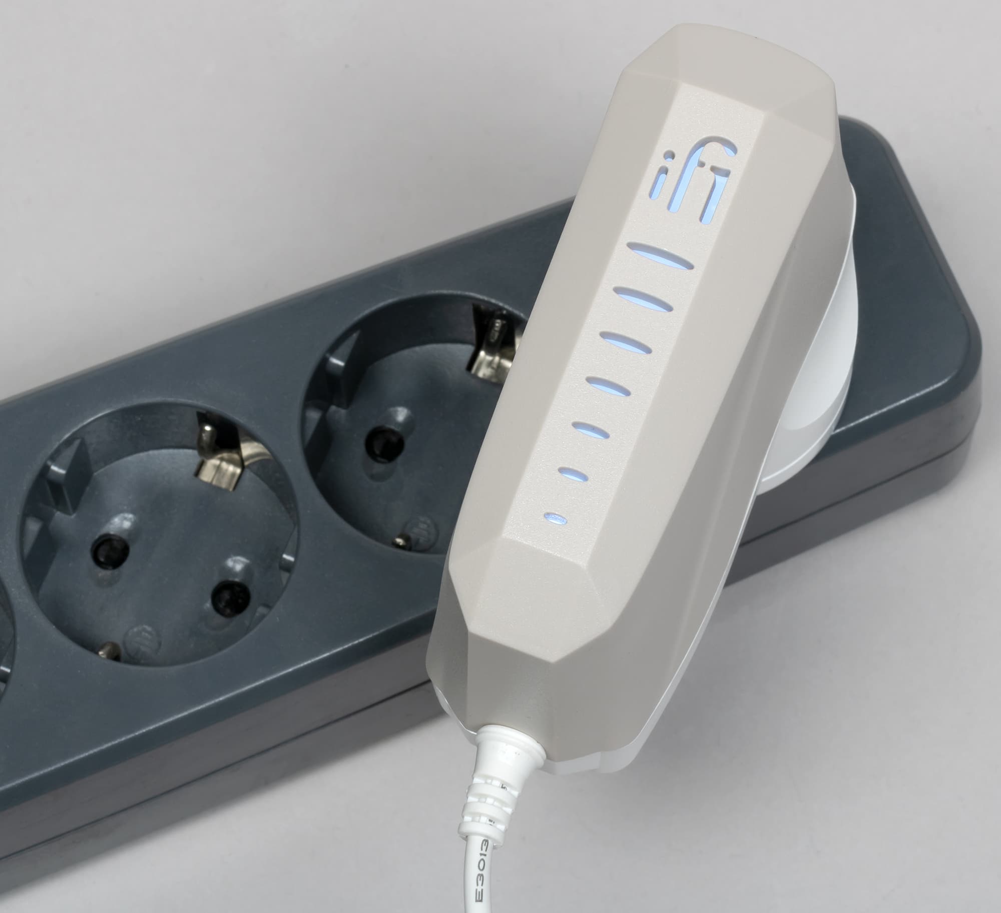 Вместе с iFi Zen DAC в наши руки попал еще один интересный прибор, о котором непременно надо сказать пару слов. Блок питания iFi iPower X, если верить маркетинговым материалам, снижает фоновый шум, создаваемый электросетью. При этом, по словам разработчиков, используется технология активного подавления, основанная на том же принципе, что и в наушниках — борьба с шумом происходит путем генерации идентичного ему сигнала, но в противофазе.