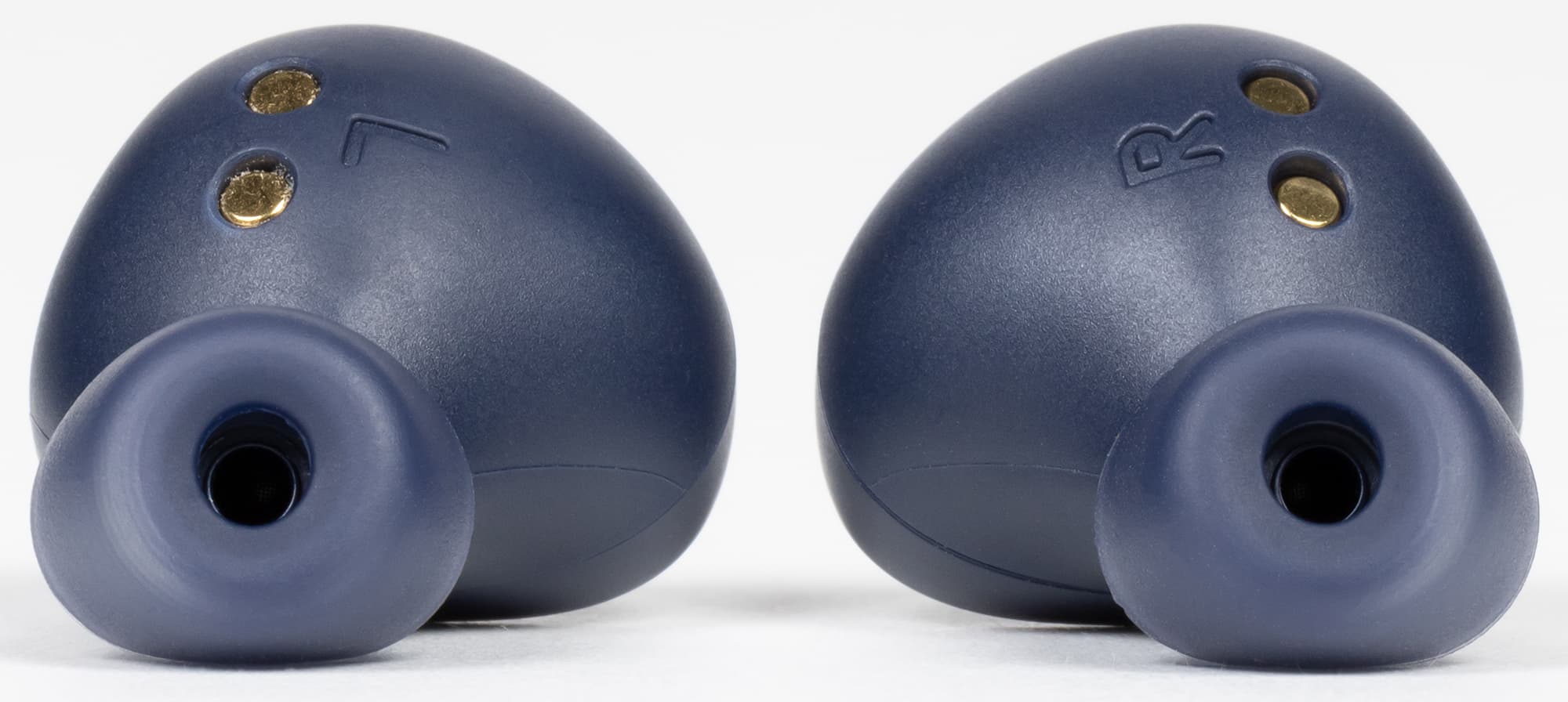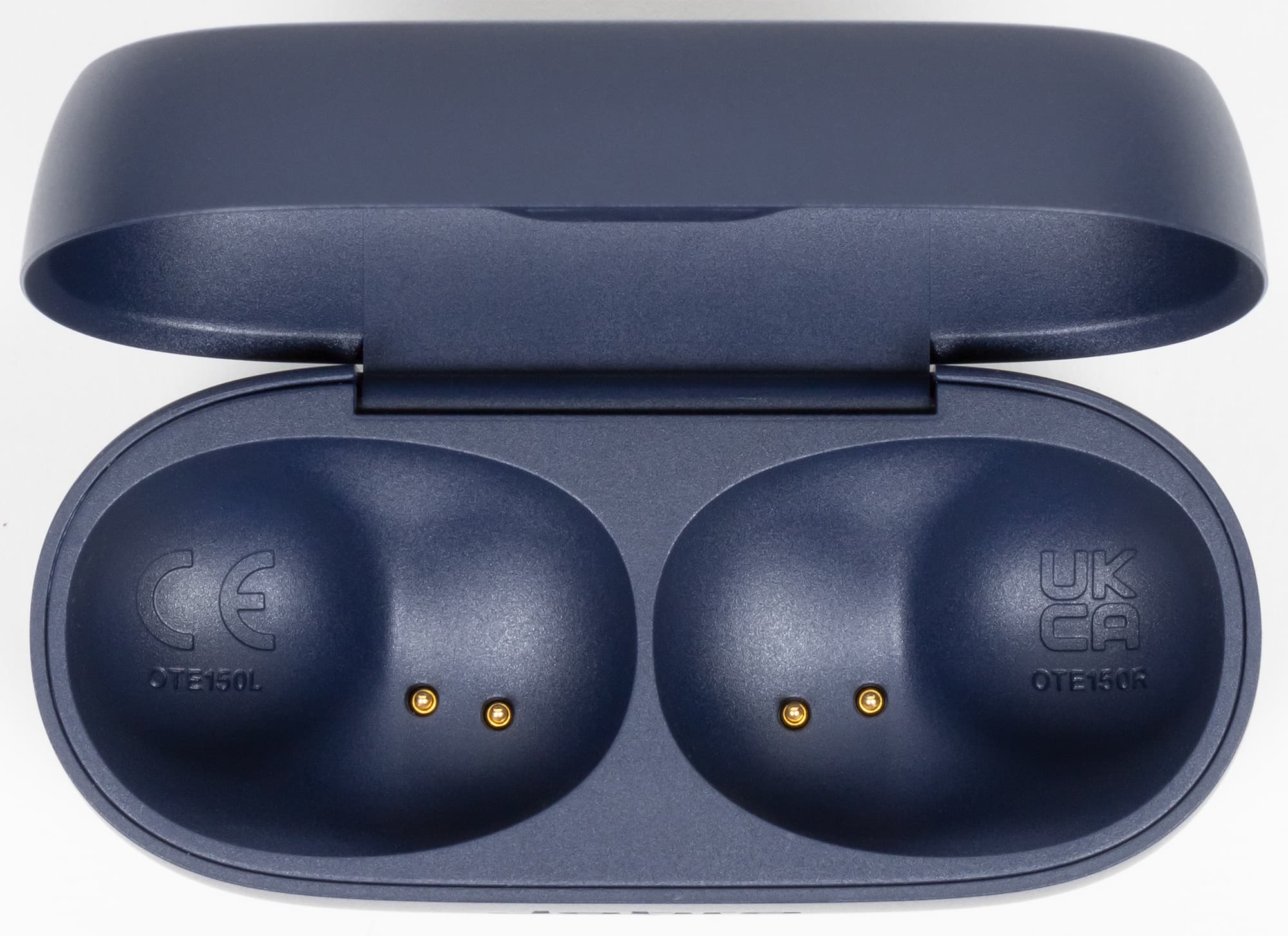 Внутри слотов для наушников видны подпружиненные контакты для зарядки, которые расположены близко к поверхности и легко доступны для очистки. На внутреннюю поверхность нанесены логотипы систем сертификации.