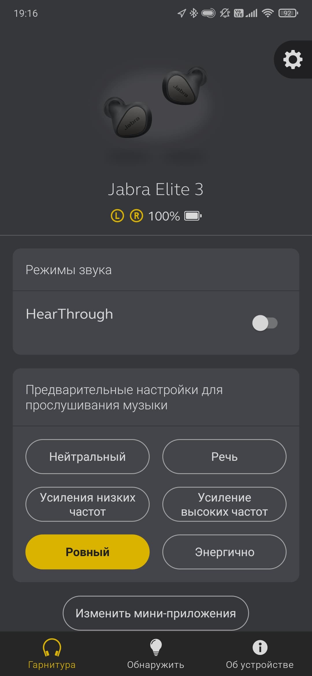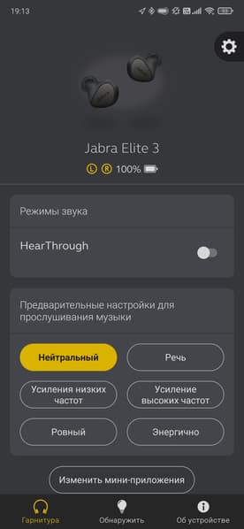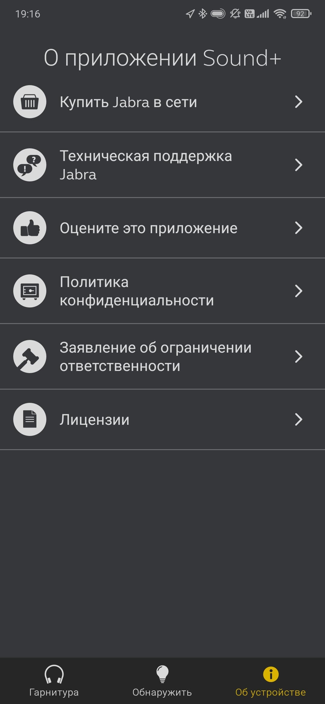 «Рассинхронов» звука и картинки при воспроизведении видео отмечено не было, а вот в требовательных к ресурсам смартфона играх они периодически появлялись, принудительный переход на кодек SBC решал проблему не до конца, но делал ее не слишком заметной — играть можно было вполне комфортно и без раздражения. Дальнейшая настройка осуществляется через приложение Jabra Sound+, о котором и поговорим.