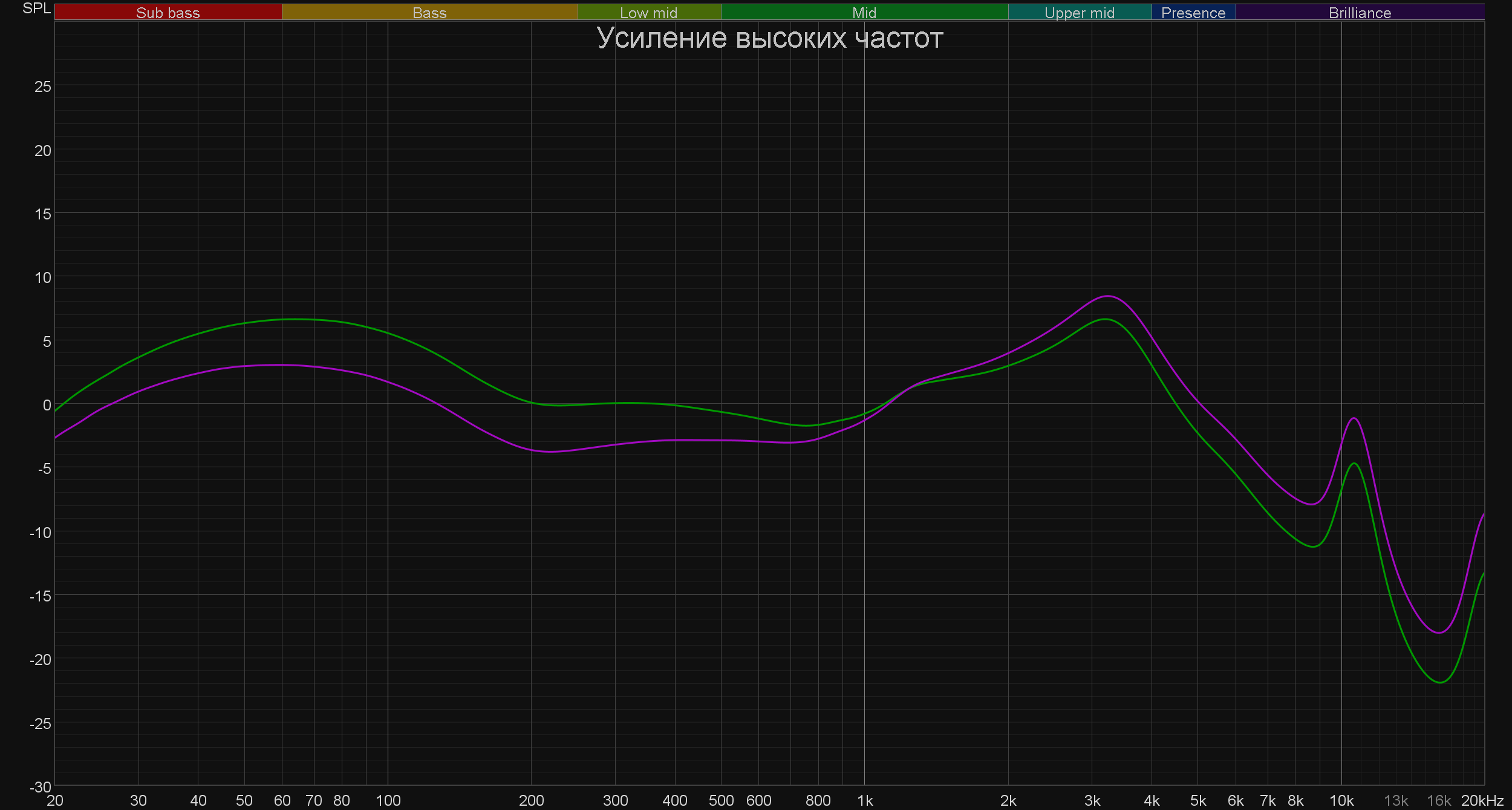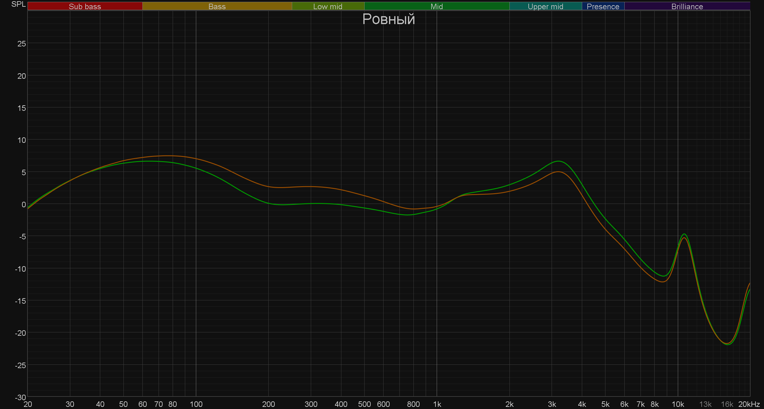 Верхние частоты воспринимаются хорошо, но подаются без лишних акцентов, что избавляет от проблем с сибилянтами и «цыканием» тарелок. В общем, гарнитура звучит несколько менее впечатляюще, чем ряд протестированных флагманов, но в своем сегменте может чувствовать себя более, чем уверенно. Традиционно проиллюстрируем все сказанное с помощью графиков АЧХ.