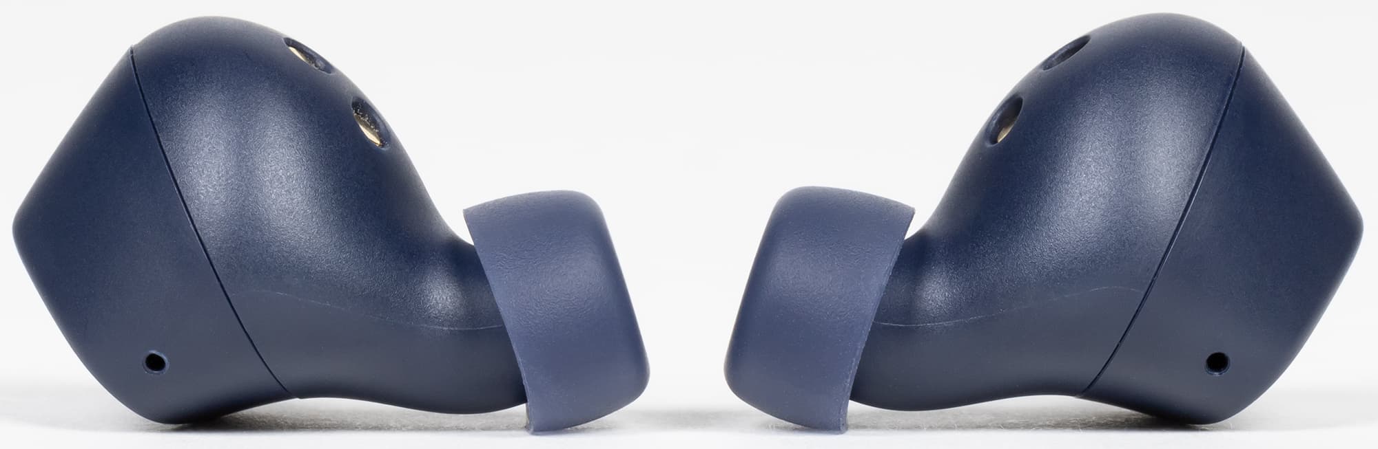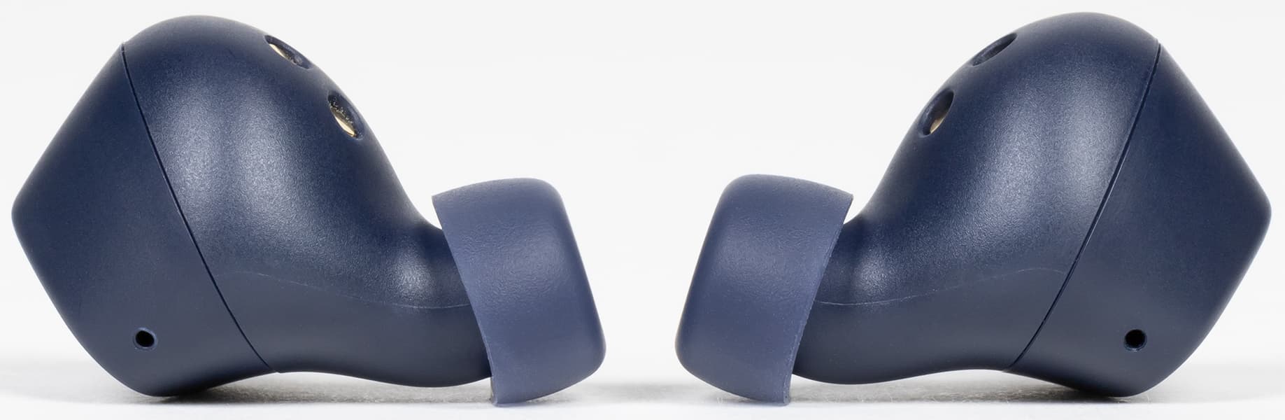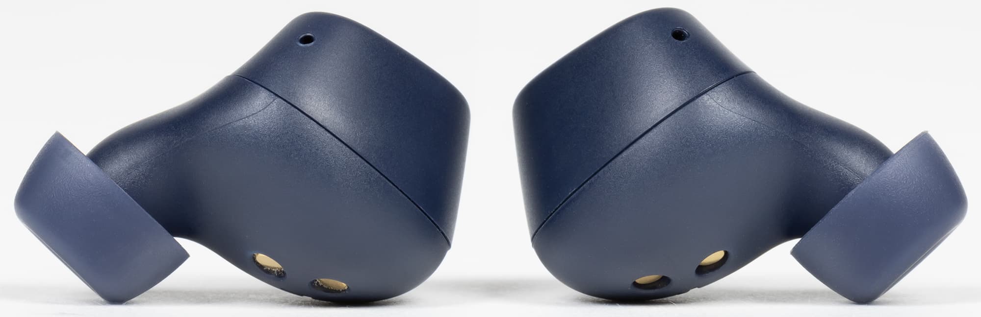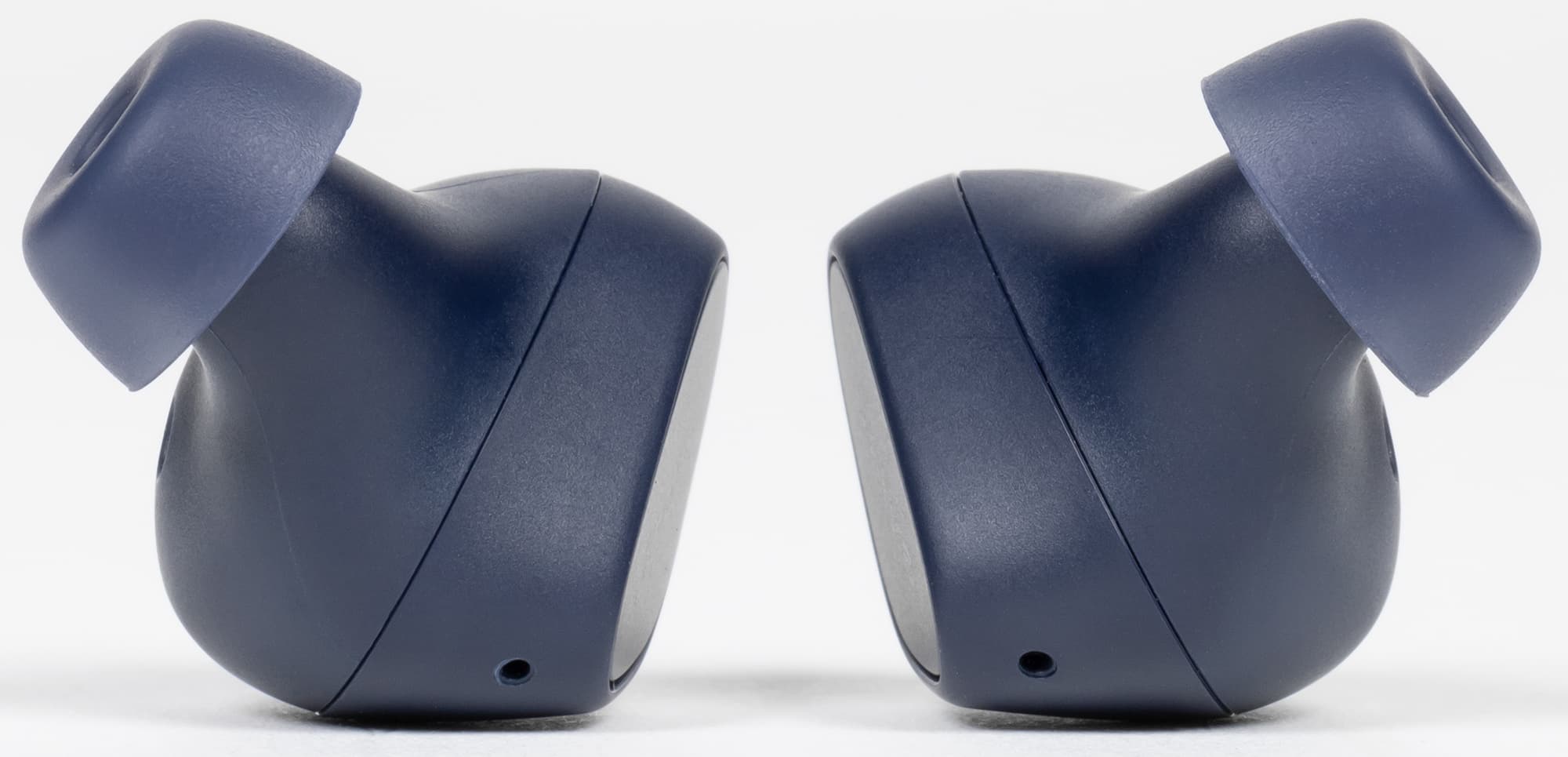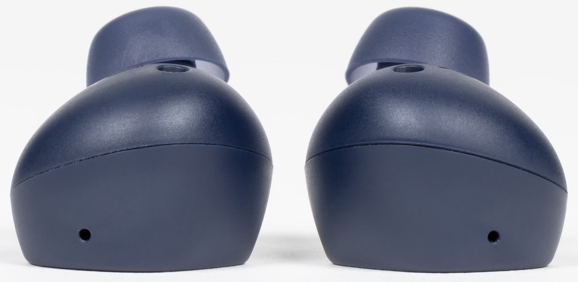 На боковой части корпуса, смотрящей вниз и немного вперед при ношении наушников, размещены отверстия микрофонов для голосовой связи.